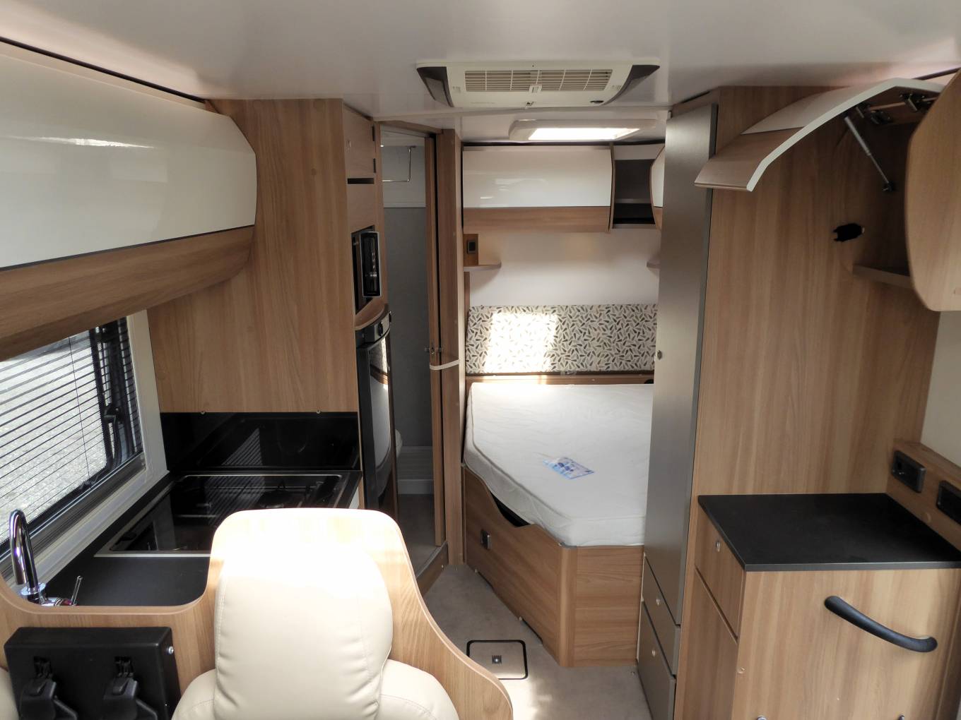 Additional features include bike rack, solar panel, gas bottle, wind out canopy, ALDE central heating, bike rack, external 230V socket plus gas BBQ point and freshwater heater. Several overhead storage units and 1 hanging wardrobe inside and storage under the bed, accessible from outside.