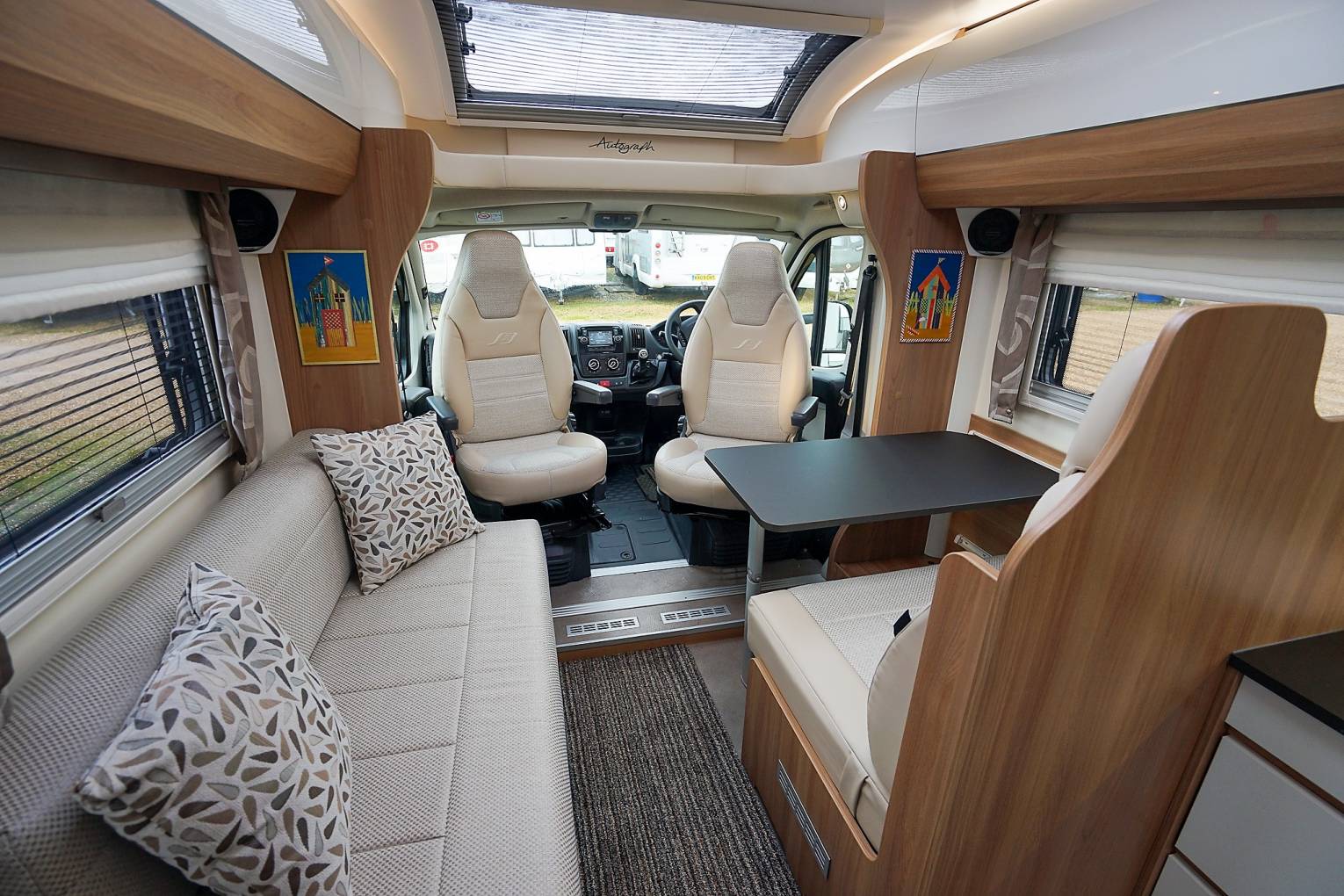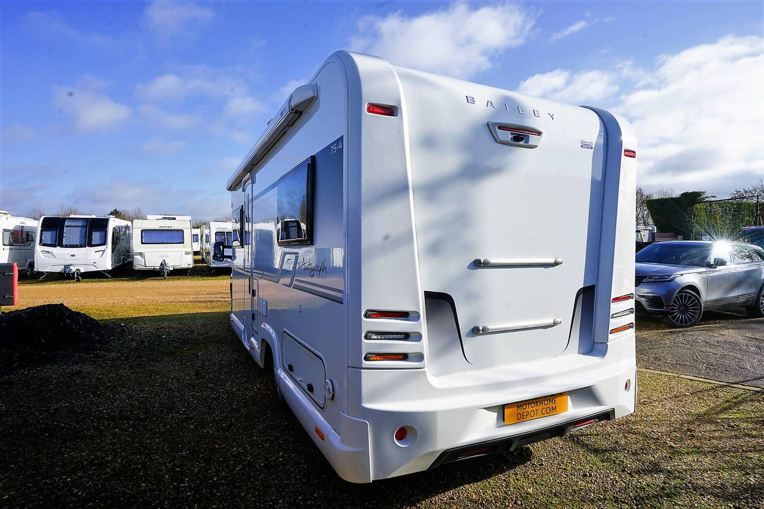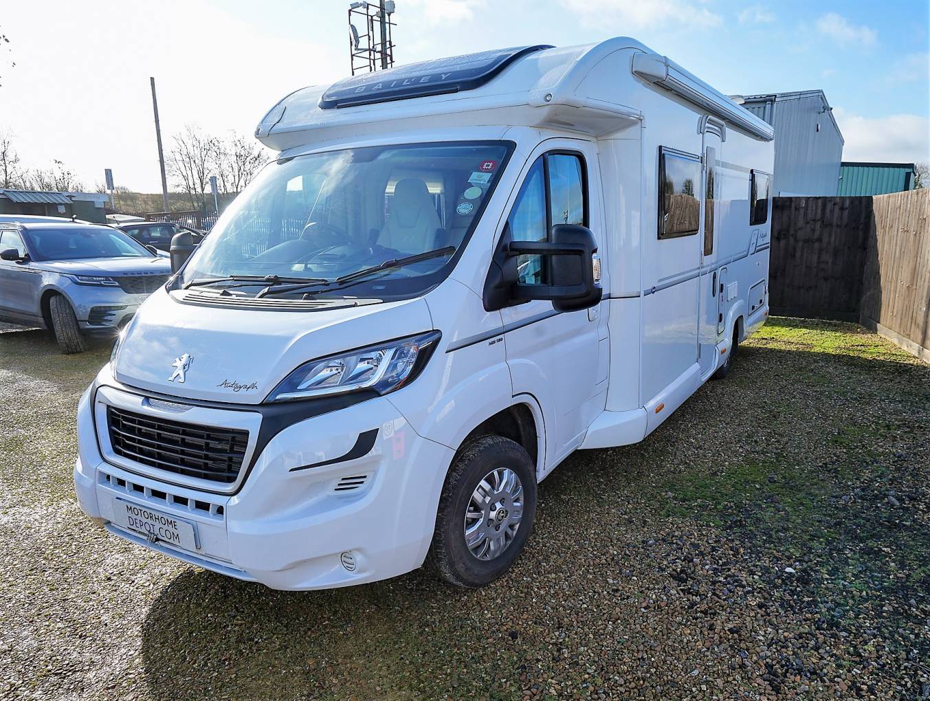2019 Bailey Autograph 75-4 Luxury 4 Berth. 4 Seat Belts - Low Profile Motorhome with Double Fixed Rear Bed, Dinette with 2 rear Travelling seats and Dining Table. Large Side Sofa & swivel Captains seats providing a spacious living area. Large Washroom with Separate Shower. One Owner and Just 3,866 Miles from new. Based on the Peugeot 2.0 (EURO 6) Hdi 160 BHP Manual RHD.