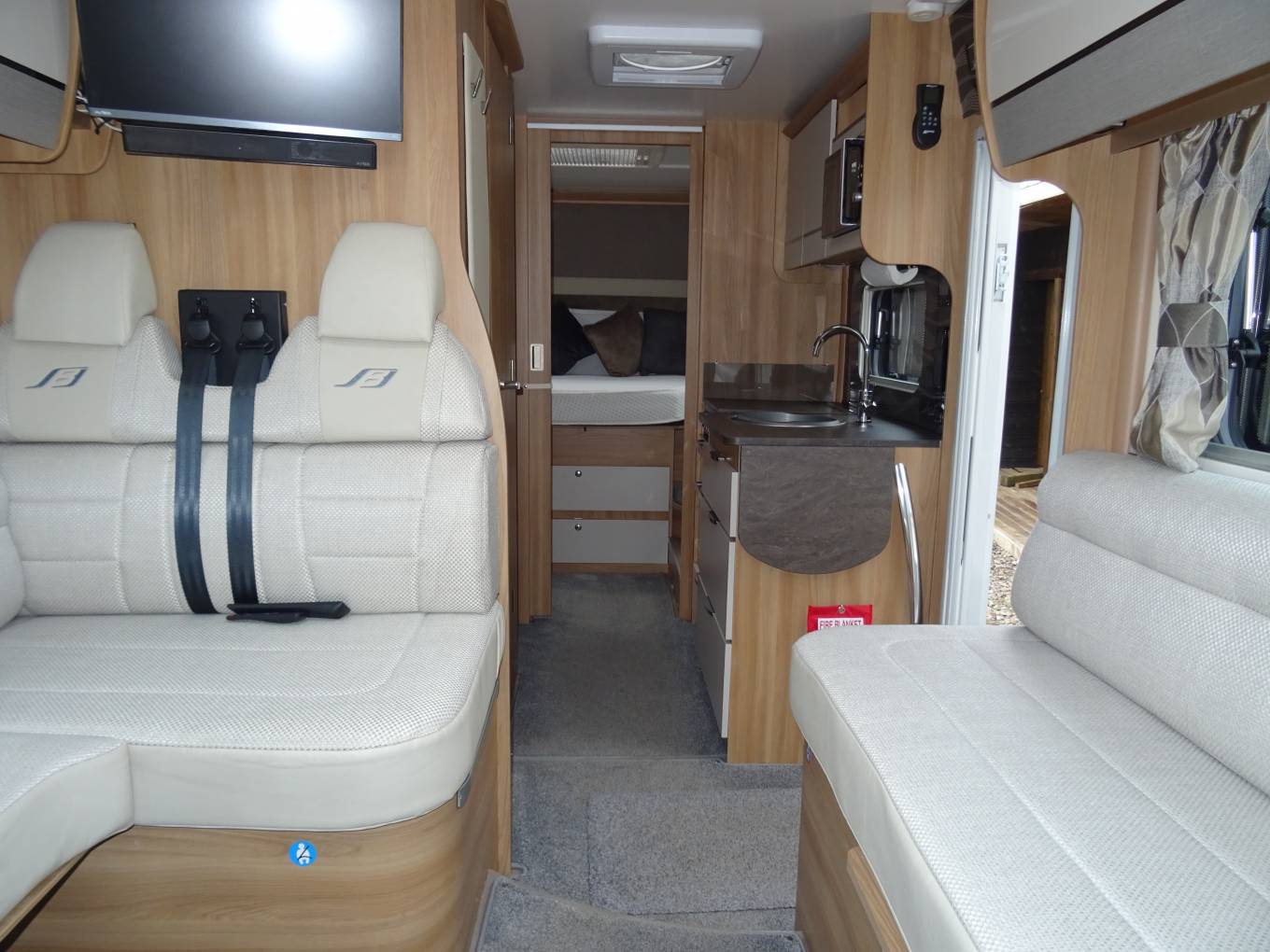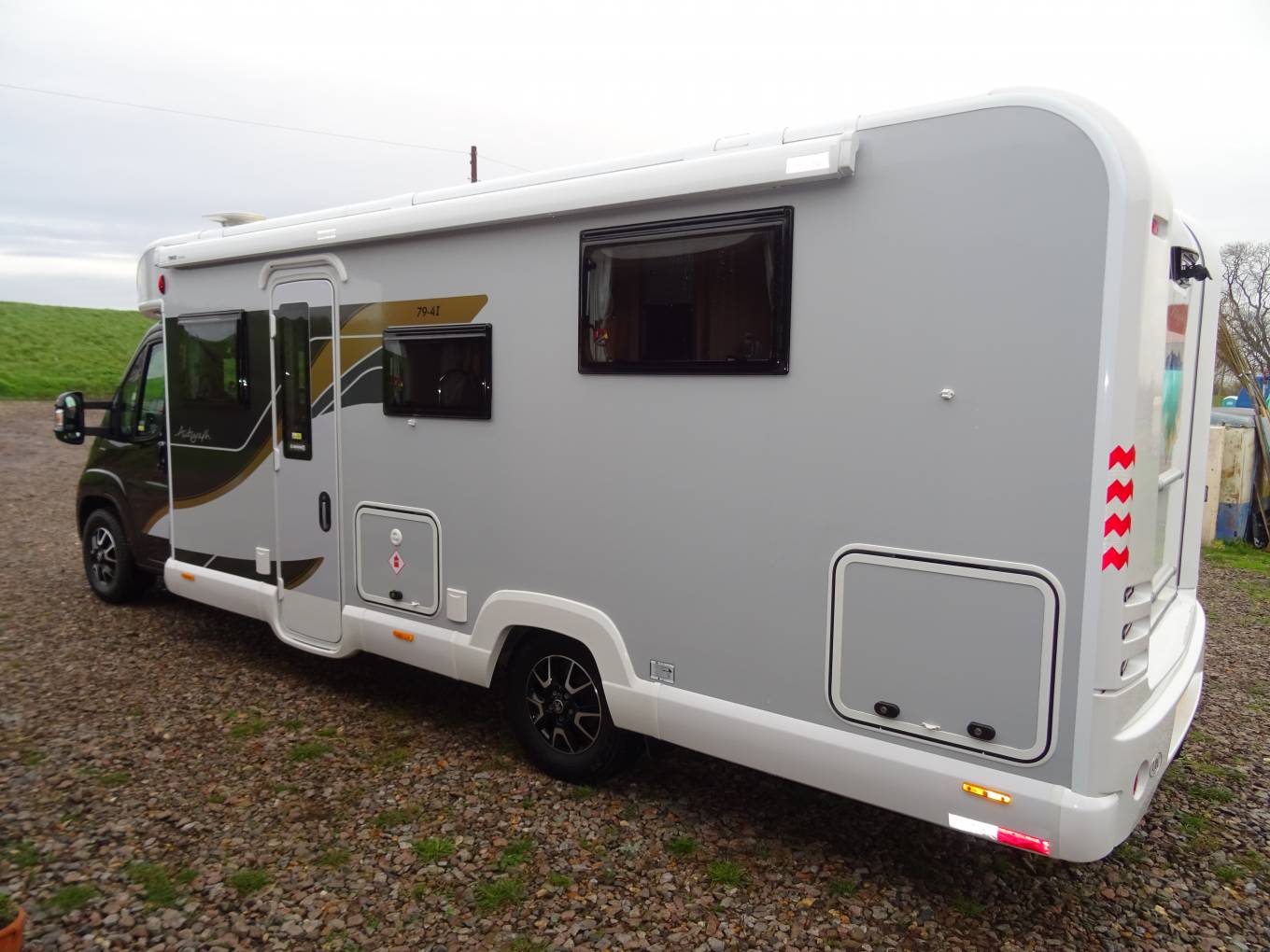 This stunning Baily Autograph 79-4i 2020 4 Berth with 4 belted seats with a great spec and lots of upgrades. Year of registration 2020 with a 1997cc diesel engine. Weight 3850kg chassis , manual gearbox, As you enter to your left there is the dining area consisting of part leather seats both the front captain seats swivel round and this makes a perfect socialising area and a great dining area. This area also makes into a double bed. The kitchen area is elegant and has all you need. It comes equipped with a three ring gas hob, oven and grill, large fridge with separate freezer, sink/worktop area with ample storage cupboards and drawers. At the rear is the luxurious island bed with lots of storage underneath with fitted speakers and a sliding door for privacy. The central washroom is very well desighned area and is very spacious with separate shower and toilet. Other features: driver and passenger airbags, cab a/c, cruise, radio, rear camera, Alde heating, TV with sound bar, blinds, swivel front seats, rear seat belts, central locking. This is the 2021 model and you will need a C1 licence to drive this motorhome.