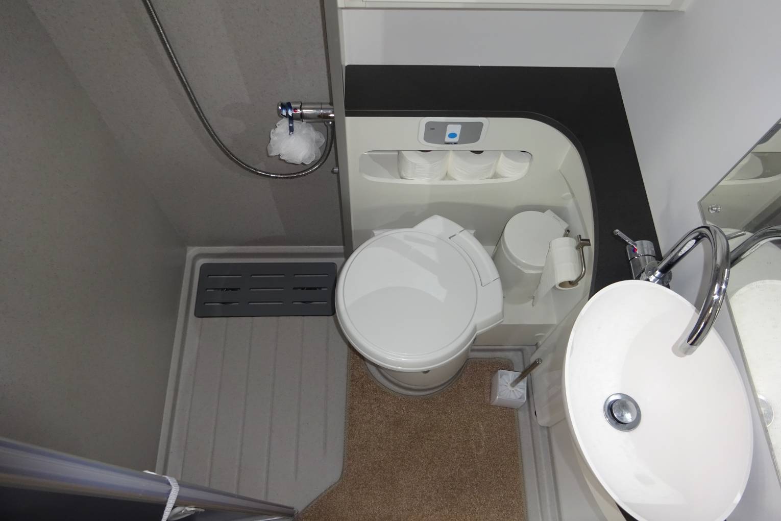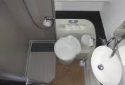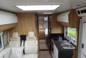 The kitchenette is well equipped with a 3 burner gas hob complemented with a fourth electric ring, an oven/grill, sink, microwave and large fridge with ice box. There are lots of storage lockers above and below the kitchen counter, and through out the living areas allowing you to bring with you everything you might need. The bathroom is fitted out with a toilet, sink and separate shower cubicle. This motorhome is well layed out and well balanced giving a real feel of comfort and space.