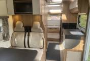 As you enter the motorhome you have the highly desired rear lounge layout featuring a large table, tv point an aerial and plenty of overhead storage. The rear lounge is flooded with lots of natural light thanks to the large rear and side windows and roof light.