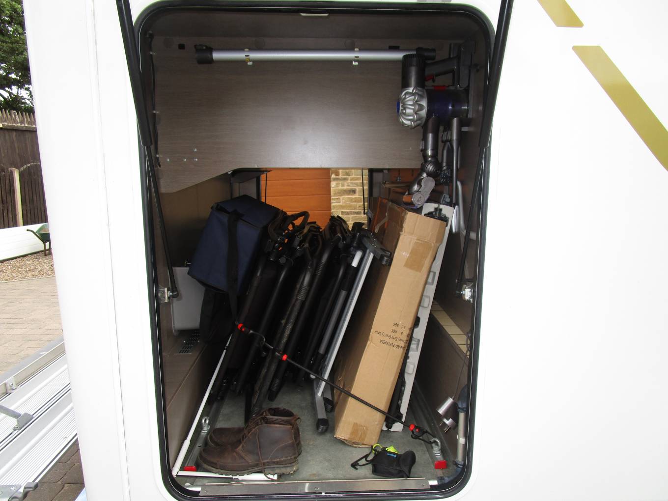 The vehicle comes with electric windows and mirrors, driver and passenger air bag, electric front blind and side window blinds, Bluetooth, Radio, CD, Cab Air Con, Alarm, Reverse Camera, Sat Nav, USB points, Habitation Air Con, Satellite System, Solar Panel, Under Floor Heating, Awning, Two x GasLow Bottles, External BBQ point, Scooter Rack, Tow Bar and large external locker. Heating is supplied through the Alde Wet Heating System.
