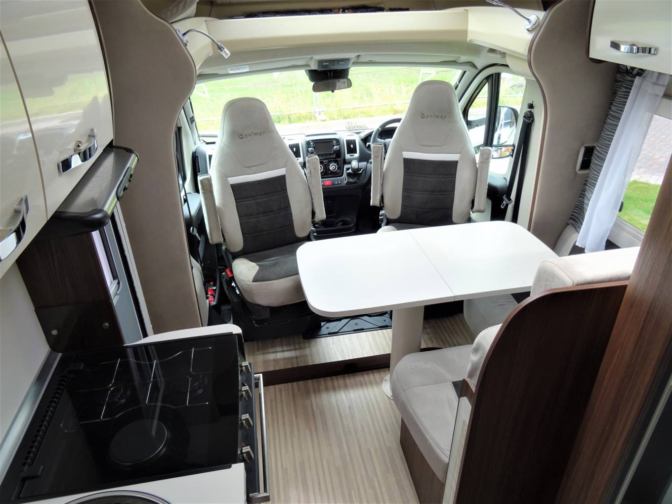 In the centre of the vehicle there's a really generous kitchen specification featuring Duel Fuel Hob, Oven and Grill, Fitted Microwave, Fridge Freezer and Sink with mixer tap.