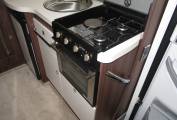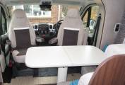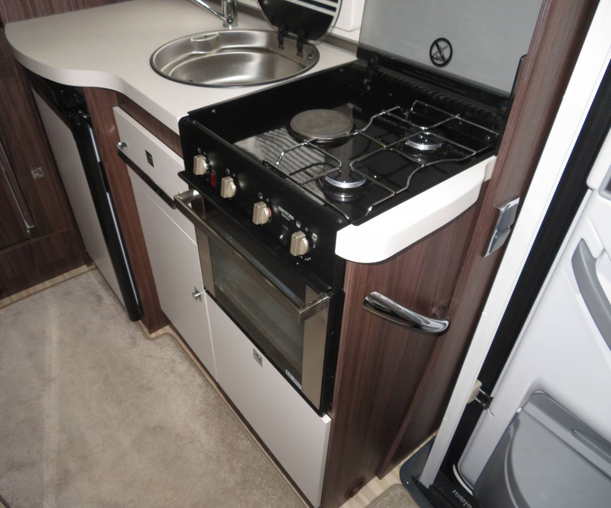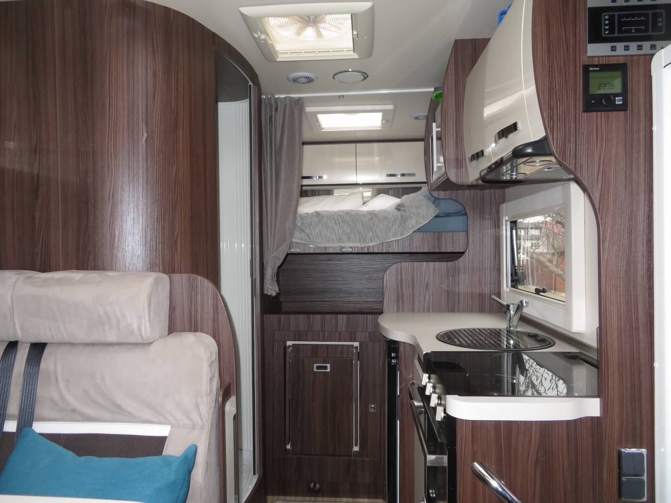 The Benimar is a stylish luxury motorhome and has everything you could wish for in the living area. The lounge/dining area is made up of the two swivel captains chairs and an L shaped corner sofa. In the middle there is a direction table that can fold out to make the perfect place to enjoy a meal or snack. The 201 has an extremely well equipped kitchen area which includes oven, grill, hob with two gas burners, and electric hot plate with extractor hood, microwave oven, sink with mixer tap and automatic three-way fridge with ice compartment.