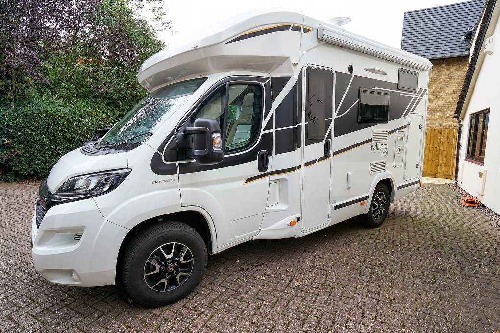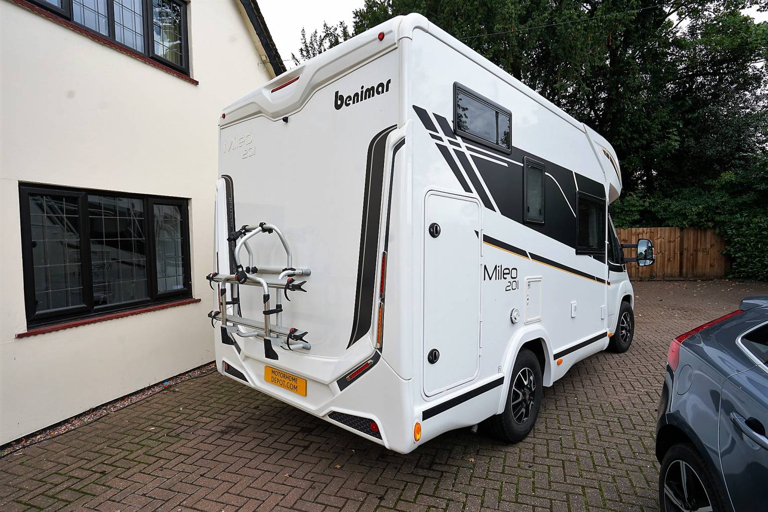 2020 Benimar Mileo 201. One Owner, Low Mileage, Luxury 2 Berth Compact Low Profile coach built Motorhome. Fixed rear Bed with Garage, 4 Seat belts. Swivel Captains seats, Large Washroom with Separate Shower, Fully Equipped Kitchen with Dual fuel hob, Oven, Fridge, Microwave, Awning, Reverse Camera, Heated Seats, Bike rack, CAT 1 Alarm, Tracker, Avtex TV with DVD, Solar Panel, Outside BBQ and Shower Point. Alloy Wheels.