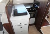 Driving this motorhome is a genuine pleasure. It is built on the acclaimed Fiat Ducato chassis and has the excellent 2.3 litre 150 bhp engine which has plenty of oomph but is still very economical to run. In the cab you have air con, driver and passenger airbags, a multi-media system with in-built sat nav and a reversing camera, power windows and mirrors, cruise control, steering wheel mounted controls, full cab privacy blinds and a USB charging point.