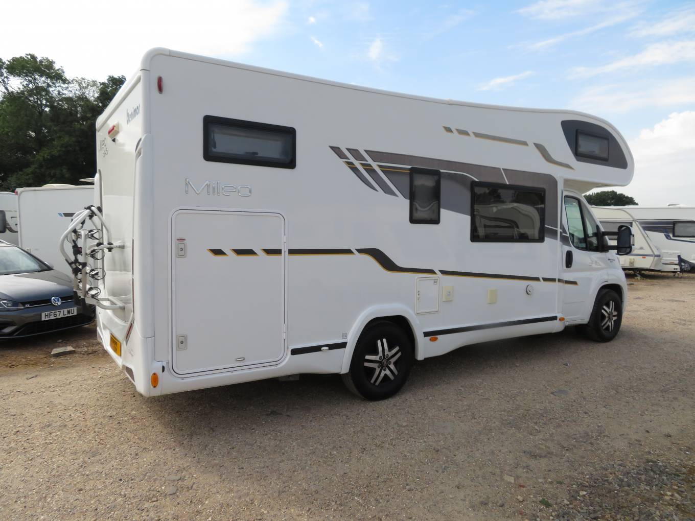 One of the main features of the 346 is the large garage at the rear - the door is 115cm high x 80 cm wide - so plenty of storage room. It also comes with a solar panel, large wind-out awning, external bbq and shower points and bike rack.