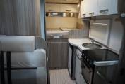 workspace is large, even if you use the drainer. The workspace is well lit, a Thetford Triplex oven and grill with a large