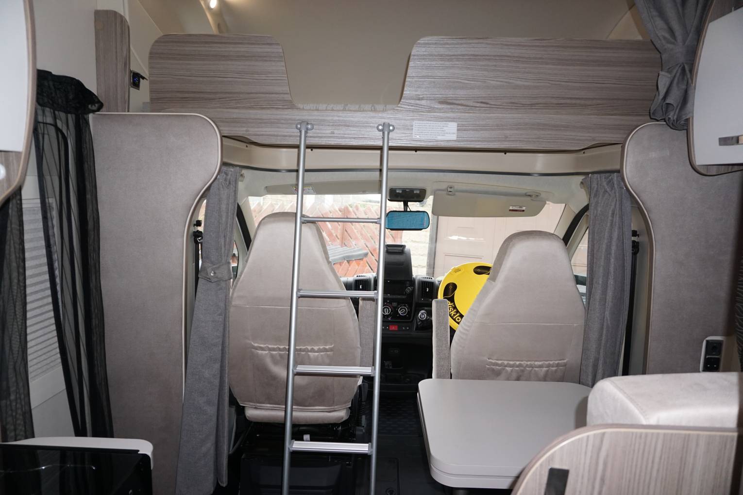 overcab bed has three shelves, a window, two spotlights and a rooflight. Both