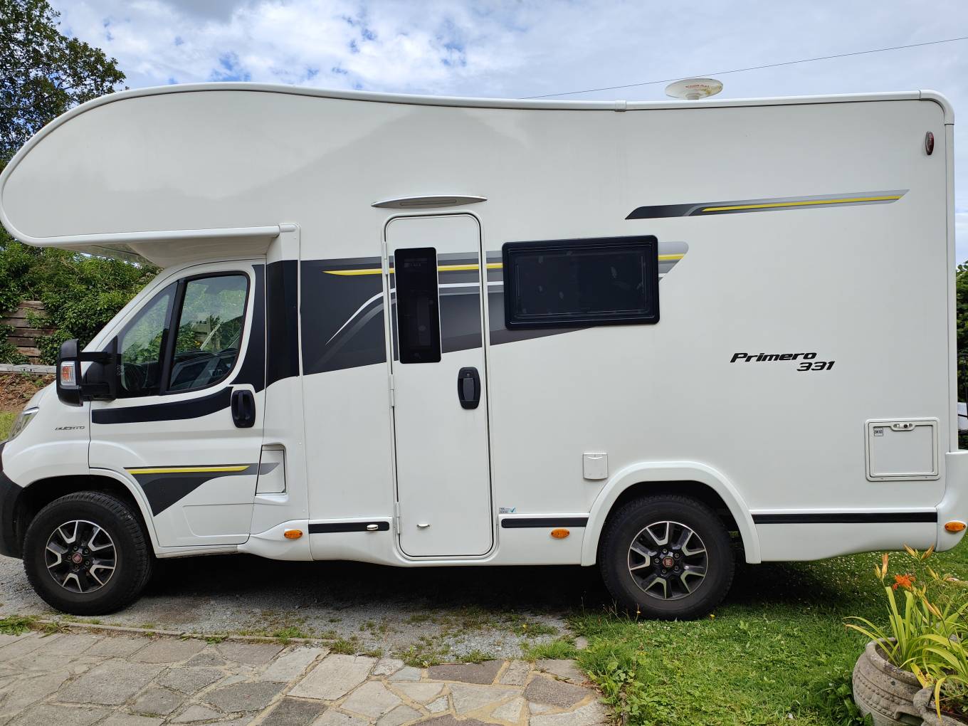This is an AS NEW example of the very popular Benimar Primero 331. This compact motorhome is sub 6 metres and sub 3500kgs so can be driven by all. With a French bed to the rear, a spacious double above the cab, this 4 berth van also has 4 seatbelts and utilises the rotating Captains chairs to form a spacious seating area. Based on the excellent Fiat Ducato cab, this 2.3jtd derivative has a 6 speed manual gearbox, cruise control, cab aircon and 140bhp. Only 4600 miles from new and one private owner. Recent Habitation service. Based in Kent and more pictures available.