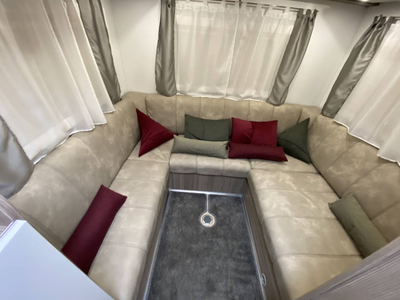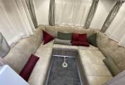 To the rear we have a spacious U-shaped lounge with a removable central pedestal table.
