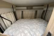 Electrically coming down from the ceiling here is the first of two sizeable double beds.