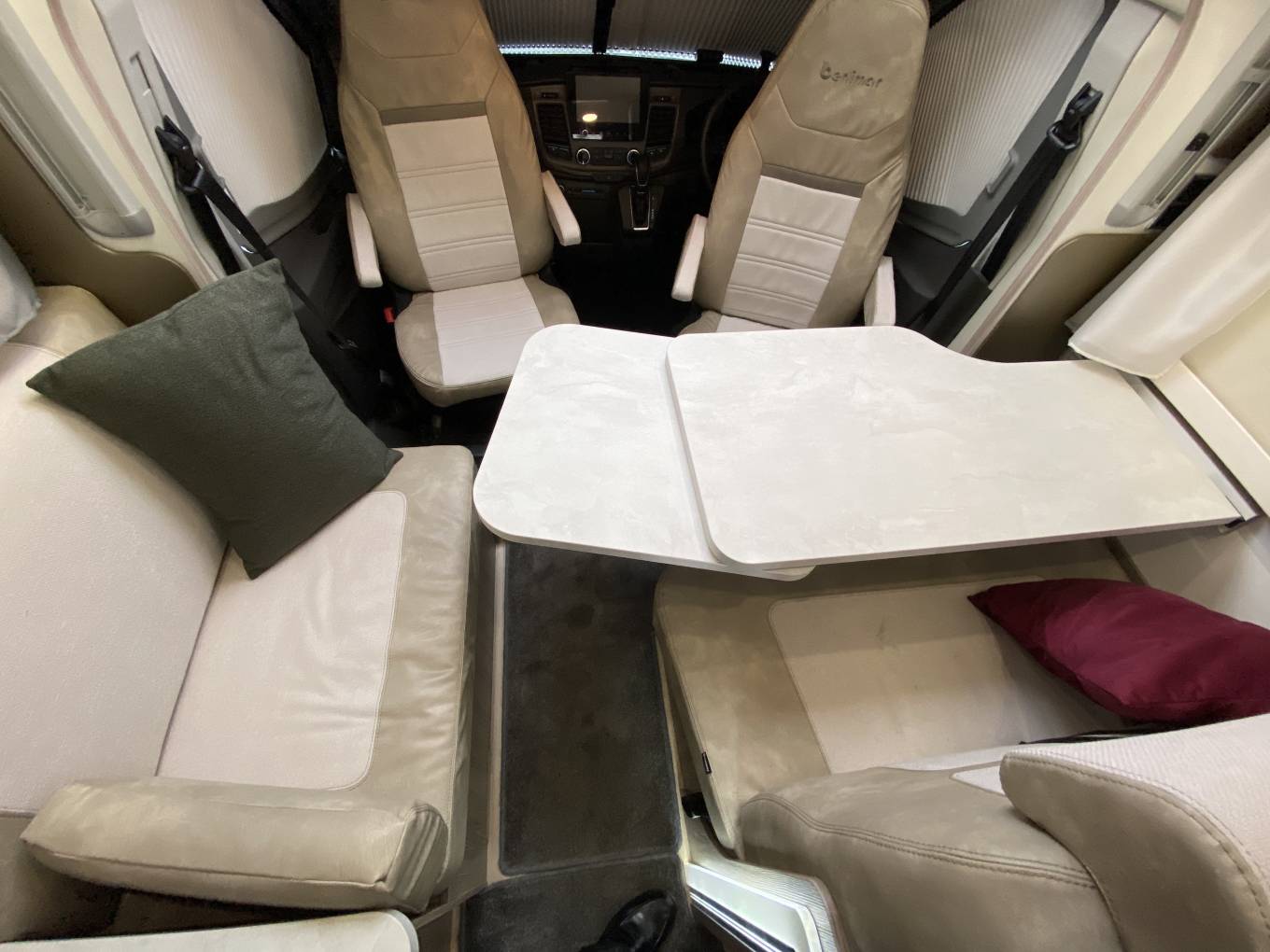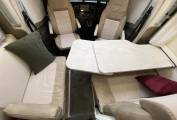 Both cab seats swivel round to make a useful lounge or dining area. The wall mounted table has an extension panel that moved to suit different dining positions.
