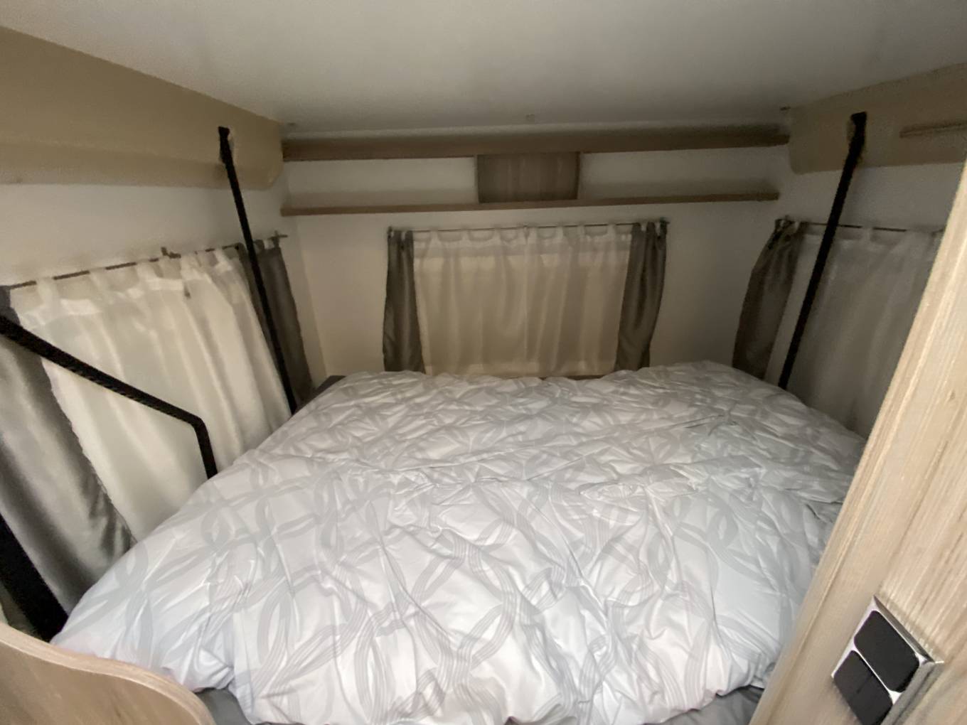 This motorhome comes complete with cutlery, crockery, a kettle, a toaster, an electric lead and gas bottle and more.