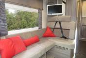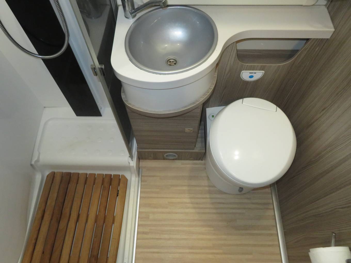 This Tessoro 486 is fantastic when it comes to getting a great nights sleep. It features the central electric drop-down bed that is so easy to bring down when required. The sofas below also make up a further double to give you the full 4 berths. At the rear there is a good-sized washroom that features a Thetford flush cassette toilet, vanity sink and separate shower. Heating and hot water are provided via the Truma I-net system which is really simple to operate. The 486 has loads of storage space throughout the van, the enormous garage is perfect for equipment such as bikes or tables and chairs and there are two large cupboard/hanging wardrobes in the motorhome and well as other cupboards and draws. Externally the motorhome comes with a solar panel, large wind-out awning and an external gas and shower point.