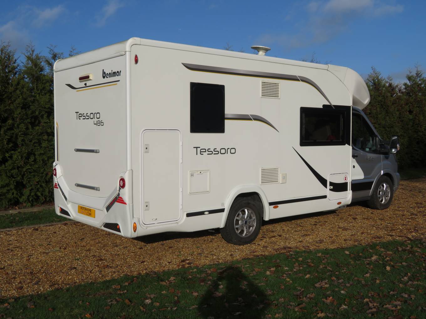 The Benimar Tessoro 486 is an absolutely fantastic luxury 4 berth motorhome with 4 travelling seat belts. The main features include a really comfortable, spacious lounge area, electric drop-down bed, well equipped kitchen, good sized washroom with separate shower and a large garage at the rear. All of this in a 7 meter van that has a revenue weight of 3500kg and can be driven on a standard UK driving Licence. The automatic engine makes it so easy to drive and the motorhome has a good service history and will come with a current habitation check and one year warranty at the asking price. It is the perfect motorhome for a couple looking to spend time in the UK or overseas who want the option of taking friends or family out for the occasional trip.
