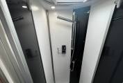 easily accessible. The Twin beds are sat ontop of a huge garage accessible from the outside either side of the van. You also have a sliding door to the bedroom for privacy. There