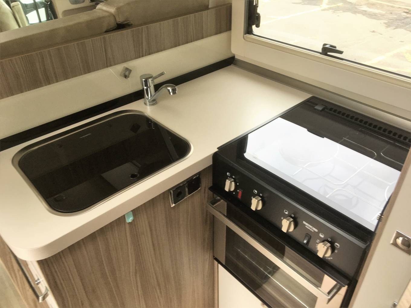 Despite its compact length (6.41m), the Tessoro 413 still packs in everything that a 2+2 family will need. The washroom (with large separate shower), kitchen (with microwave and big fridge/freezer) and sleeping accommodation (with adult-sized bunks) are all excellent and the spec is comprehensive. Add in the 170bhp Ford chassis and this Benimar makes a great package at a competitive price.