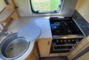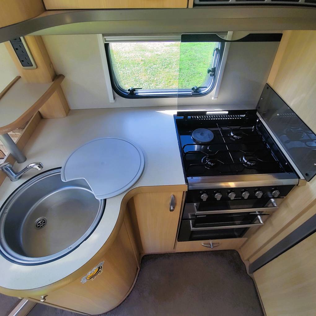 The kitchen stove offers 3 gas and 1 electric hobs. The barely used (as is the shower room) hob, oven and grill are immaculate. The large separate compartment fridge-freezer has two auxiliary fans for added cooling in very hot weather.