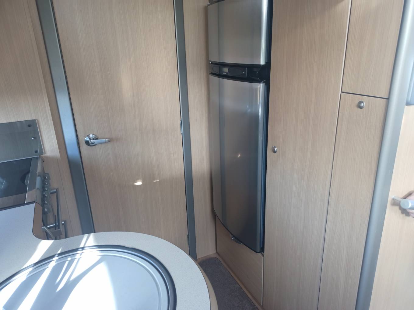 There is water and space heating on the combination gas and electricity, via the Truma boiler. The fridge freezer works on 12, 230 v and gas.
