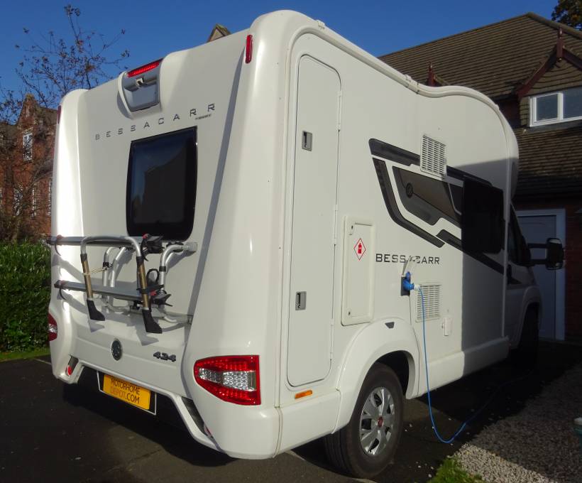 MotorhomeDepot.com Chester and Wirral present for sale this 2015 (15 reg) Bessacarr 424 with Automatic gearbox. The layout is end washroom, moving forward we have the kitchen then the lounge dining area. When you step on board it's hard to believe this motorohme is just 5.99 m long, it feels very spacious indeed. The washroom is typical Bessacarr being generous in size. As you enter the washroom you have a modern handbasin with large vanity unit above that has mirrored doors. Another cupboard is below the basin. The toilet is a Thetford cassette unit. Above the toilet is a large upright cupboard with hanging rail that can be accessed from outside. The shower cubicle is separated by a folding door then in the shower are two corner shelves, an adjustable height shower head, some hooks and a down light. The kitchen is on the nearside and very well equiped with Aspire Mk 2 full oven, designed for motorhome use with