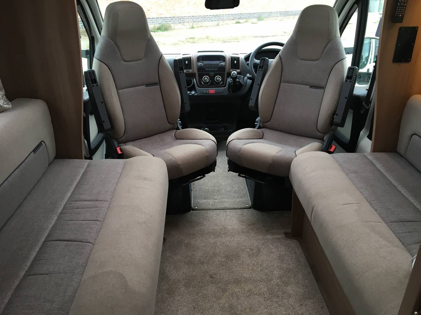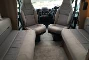 The first impressions give you that sense of space in the ample front dining/lounge with swivelled cab seats. It is a 3,500kg chassis, drivable under all licences as the internal layout has twin parallel settees. .