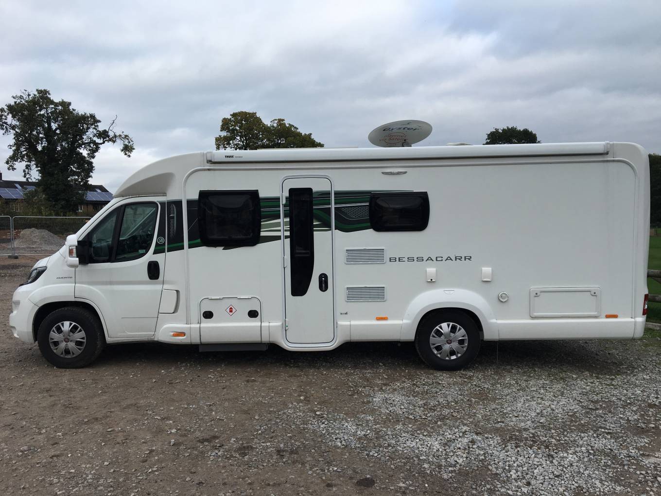 Island bed layouts generally require more space in a larger motorhome – at 7.75m the 494 is no exception, but it’s neatly styled with a sleek roofline and grey-green graphics. Fiat’s recent cosmetic surgery has refined the nose, made the grille more friendly, and LED daytime running lights emphasise the more slender ‘eyes’. Bessacarrs have a recessed 4.5m awning as standard, plus door mirror covers, and an excellent twin-lens reversing camera, whose monitor occupies half of the internal cab mirror.
