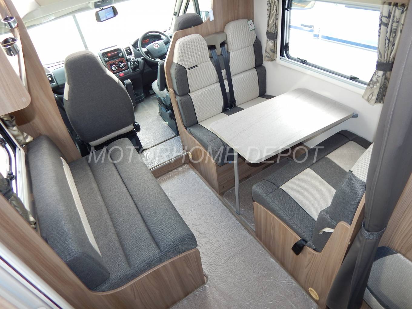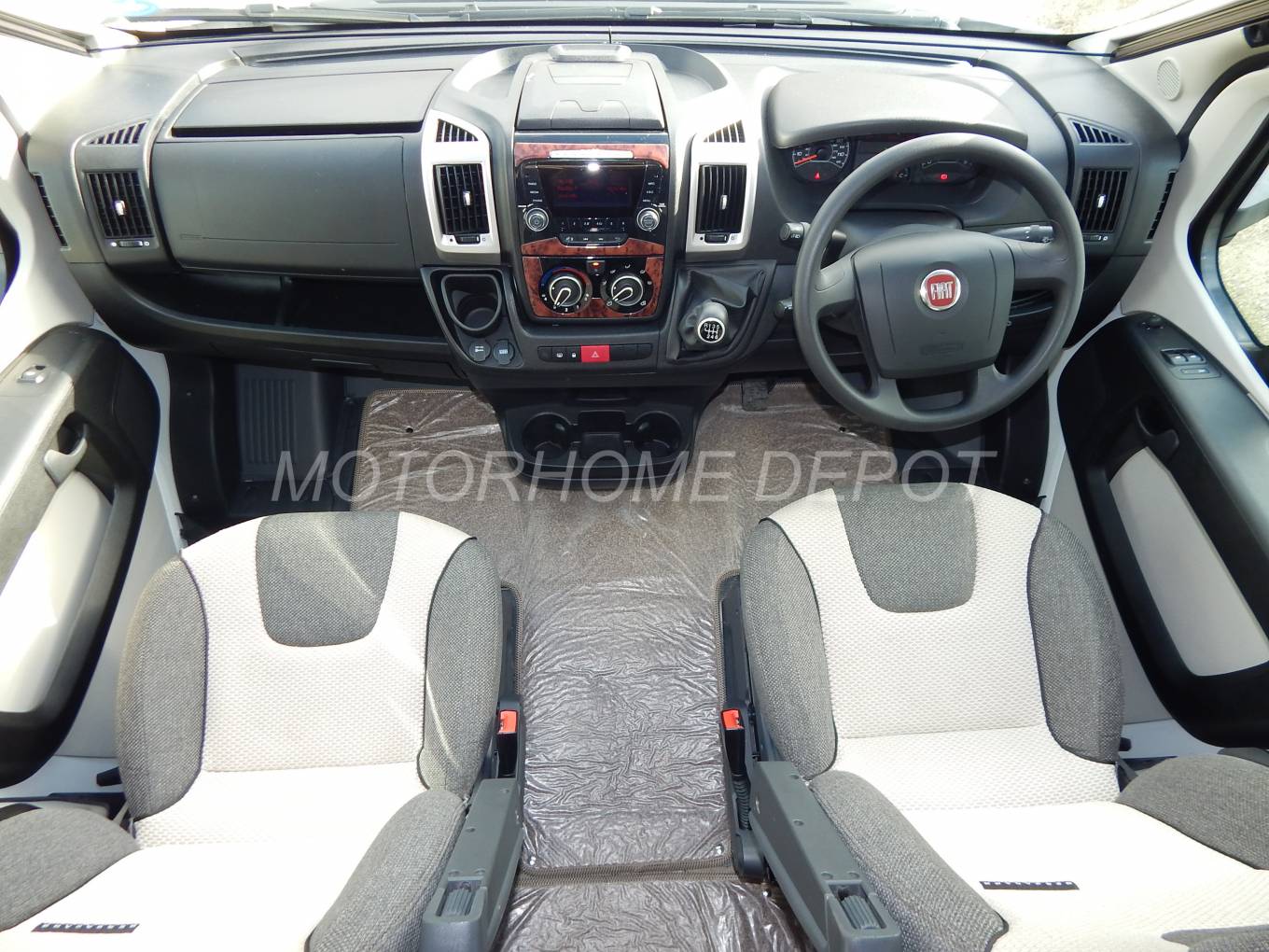 The cab has a large panoramic sunroof above, air-conditioning, 2 swivelling seats, a multimedia unit with DAB radio, iPod input & Bluetooth phone connectivity, cruise control, mirror mounted camera monitor, electric windows, mirrors, central locking plus a Fiat immobiliser. Two 12v power outlets and there are built-in privacy blinds to the windscreen and side windows.