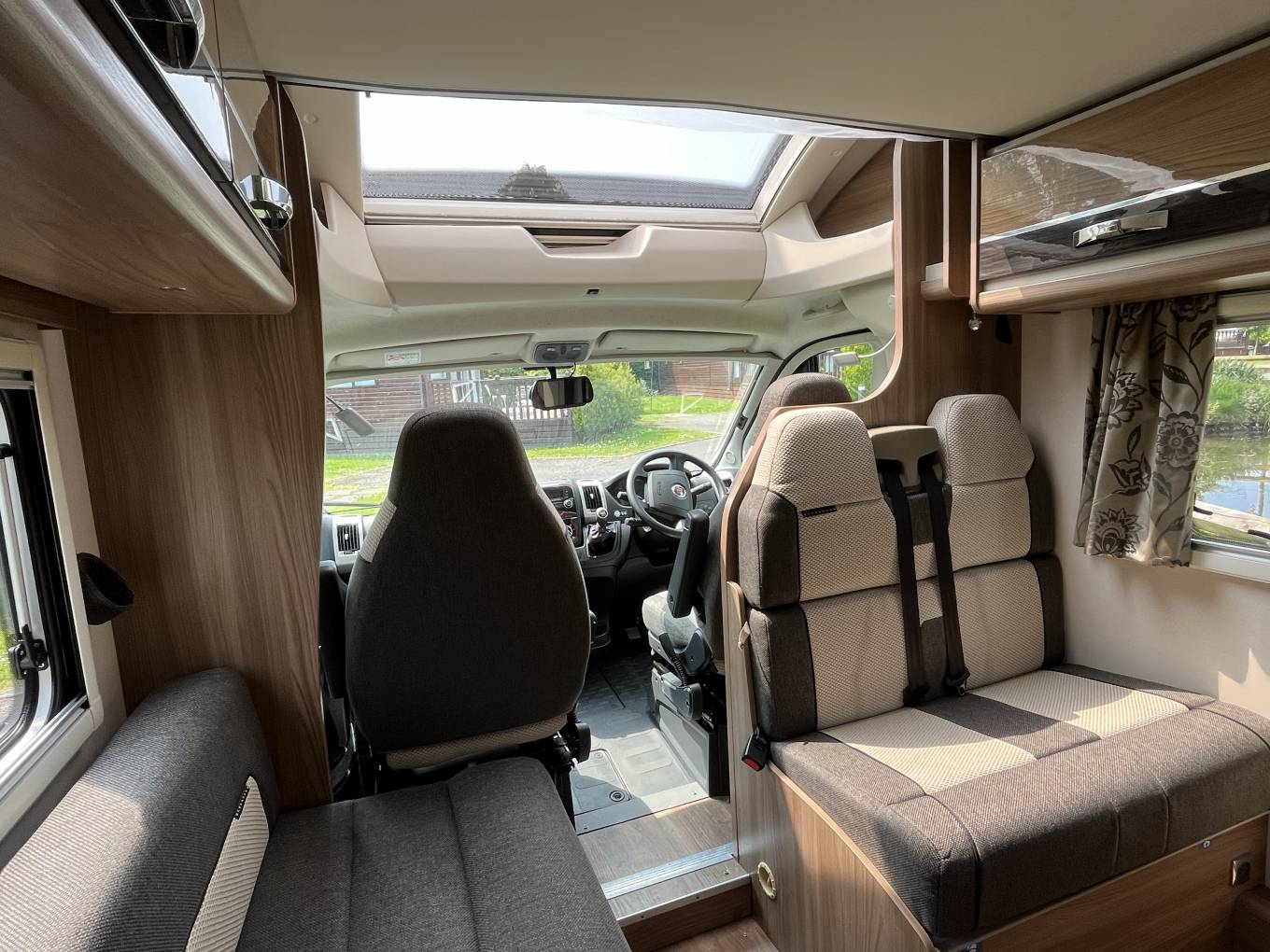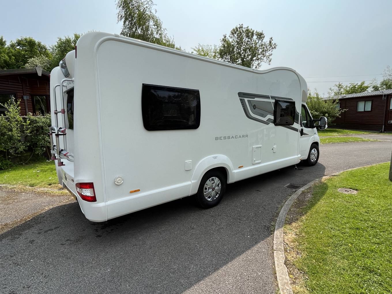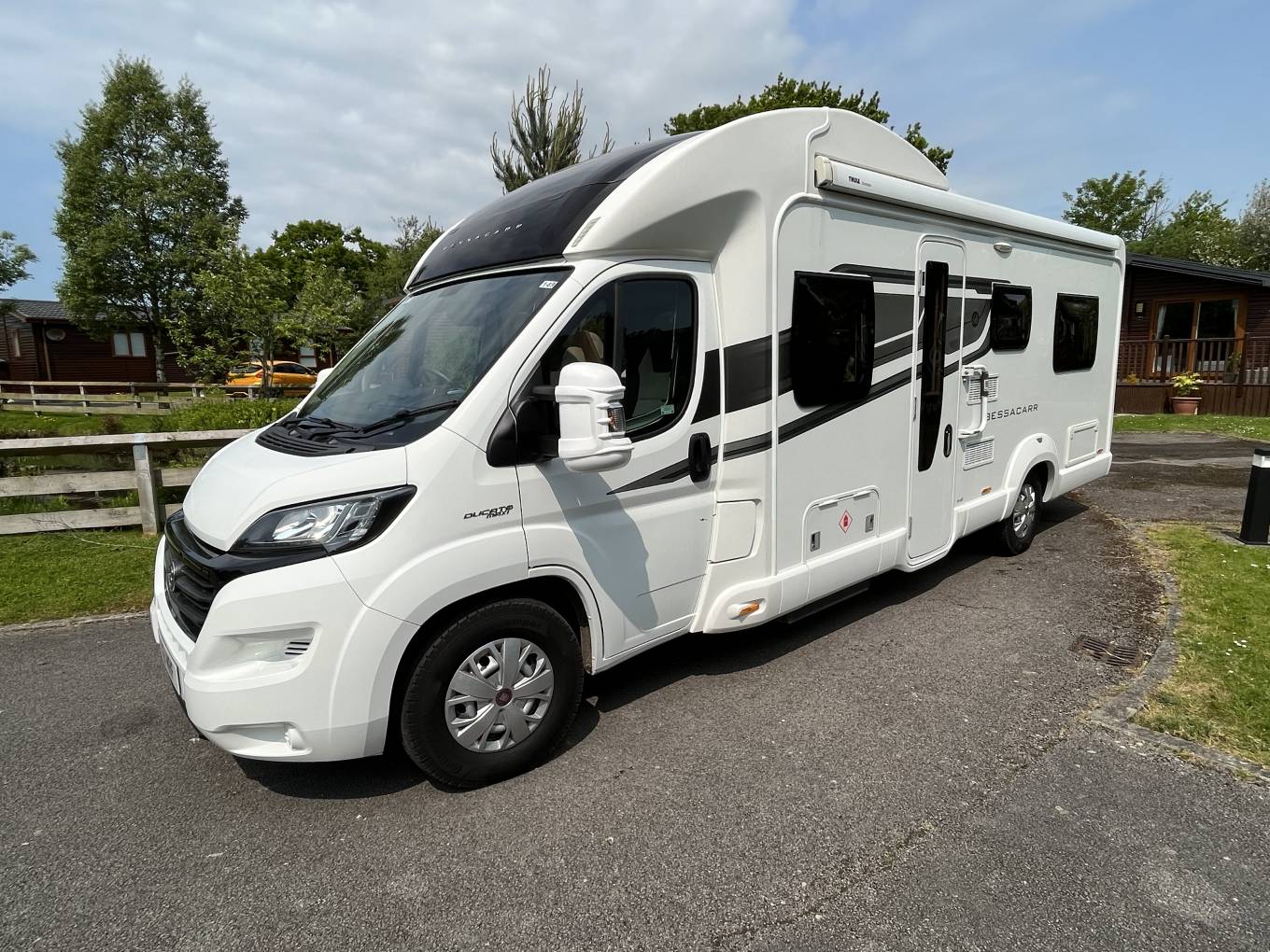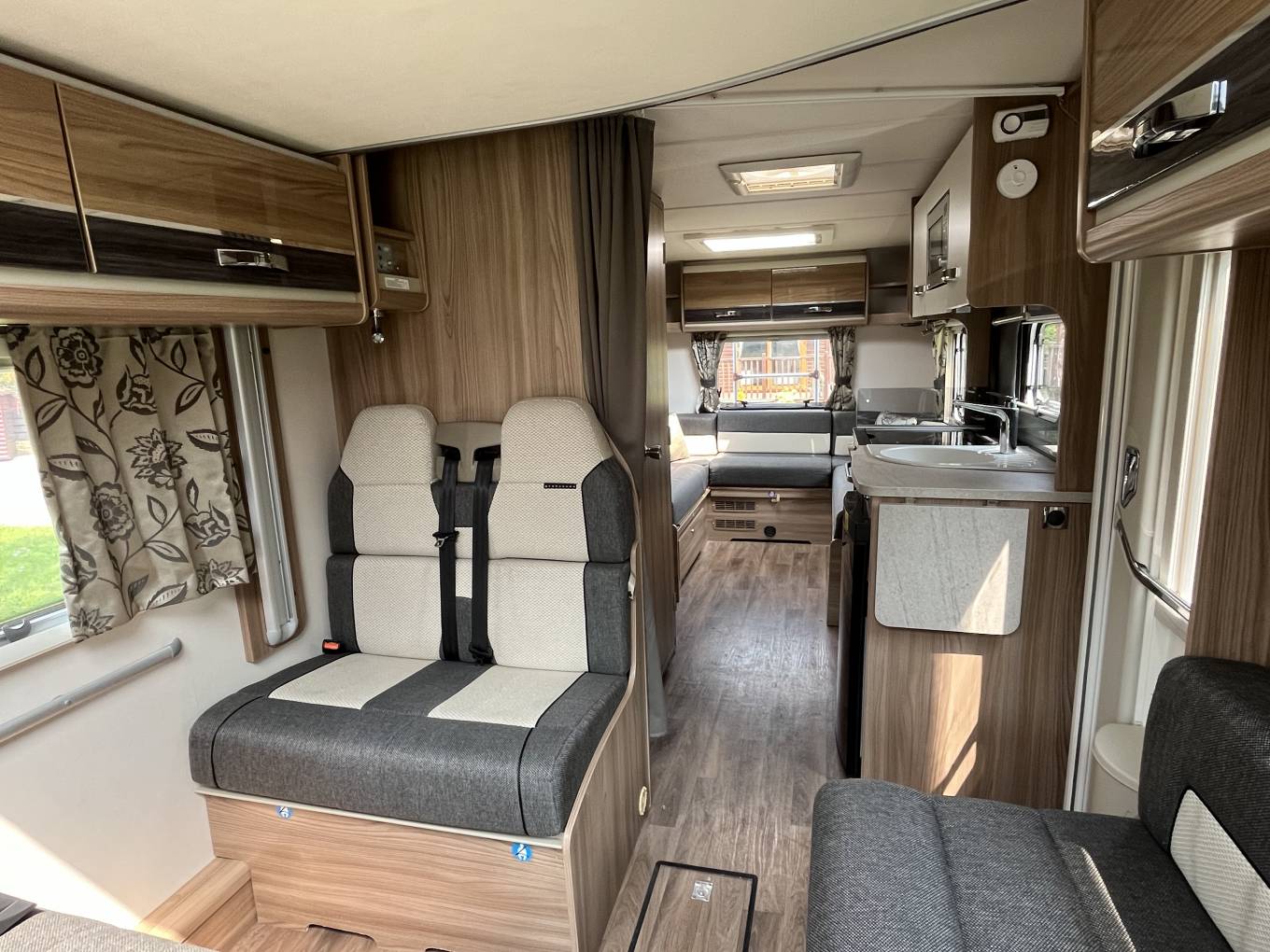 Bessacarr 496, Six Berth Motorhome with Rear Lounge and 6 Seat Belts. This motorhome has one previous owner with just 5,325 miles on the clock and is in beautiful condition inside and out. At the rear is a large lounge that can be used as 2 single beds or a double, in the center is a well equipped kitchen, including a microwave and oposite this is the bathroom. At the front is the dinning area and a large over cab bed. It comes with Cab Air Con, Cruise Control, Twin Rear Camera, DAB Radio with Bluetooth, Blown Heating, Canopy Awning and Bike Rack. It also comes with Gas Bottle, Mains Lead and 2 sets of keys. An excellent example, call for more photos and information, viewing by appointment in Fylde.