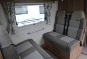 The front lounge coverts into a double bed with a third double bed above which pulls down from the ceiling.