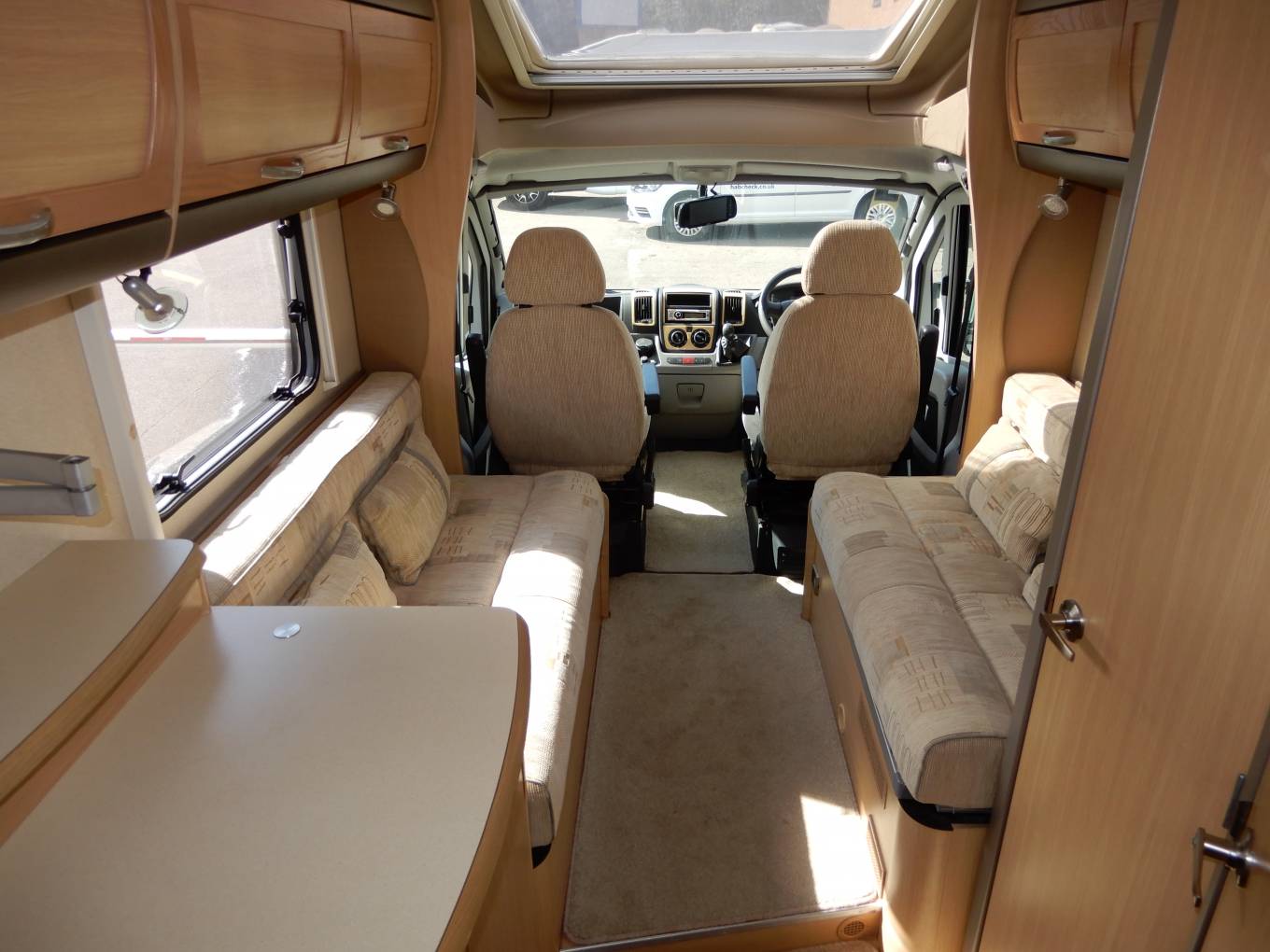 Here we have a Bessacarr E510 compact, on a fiat 2.3, This is a perfect motorhome for up to 2 people to have a adventure of a lifetime. This compact motorhome is under 6m yet you wouldn't know it when you are inside. This motorhome is clean inside and out and in great condition, it has cab aircon, built in blinds. electric windows, reverse camera and 6 speed. The central dining area has two bench seats that can be used as two single beds or one large double, there is loads of storage either in the all round wall units or under the seats. Both front seats turn to the centre and the large removable table makes it a great dining area. The kitchen area has a full oven and grill, cooker top with gas hobs, fridge freezer, microwave, sink and mixed tap. The washroom has a Thetford cassette toilet, sink with mixer tap and a separate shower. Externally the connections for a bike rack are fitted and it has a wind out canopy, Also this comes with a solar panel to keep ypu topped up where ever it may take you. This motorhome can be viewed in Rotherham by appointment only.
