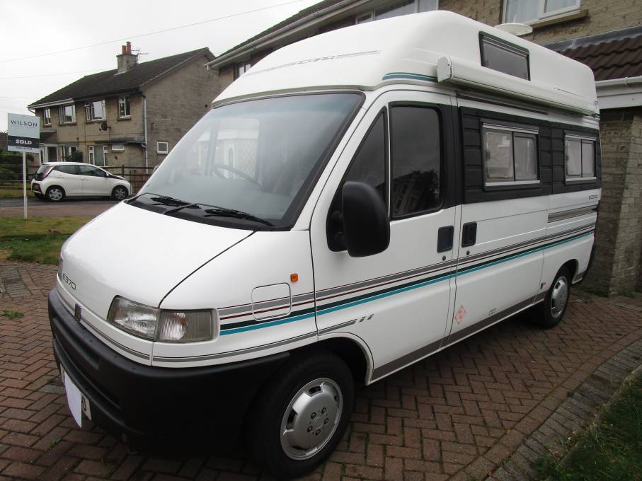 Located in Chesterfield, 1998 Bessacarr E370 2 berth, compact camper van based on the 1.9 TDI Fiat diesel engine.