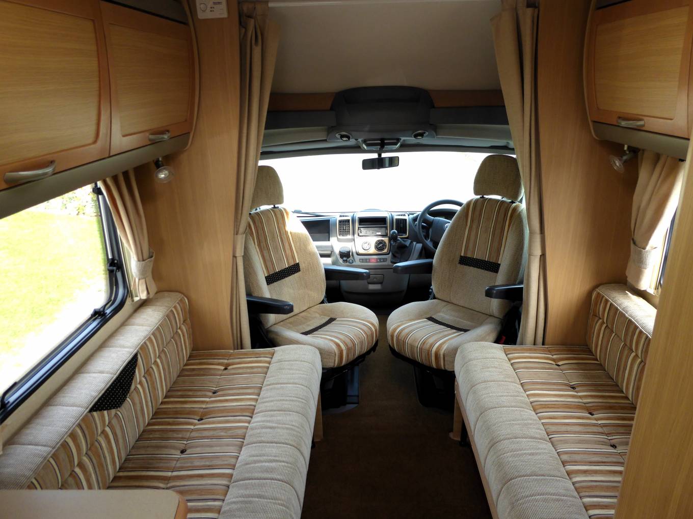 Upfront both seats swivel, there is a radio with Bluetooth capability, reversing camera and for complete darkness, there are Remis blinds.