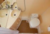 The washroom has a built-in washbasin with chrome mixer tap and storage cabinet below, a separate tap supplying the shower attachment, a good sized shower tray plus a Thetford cassette swivelling toilet with electric flush.