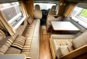 Coming into the heart of the vehicle is an extremely generous seating area perfect for socialising, relaxing and dining. It is comprised of three sofas, two of which face each other which hold two travelling seatbelts, a removable central table, and on the alternate side a long bench seat which is around 7-8 ft in length so can be used as as fixed single if required. If you do like a large bed the whole dinette area can transform into an enormous confrontable bed.