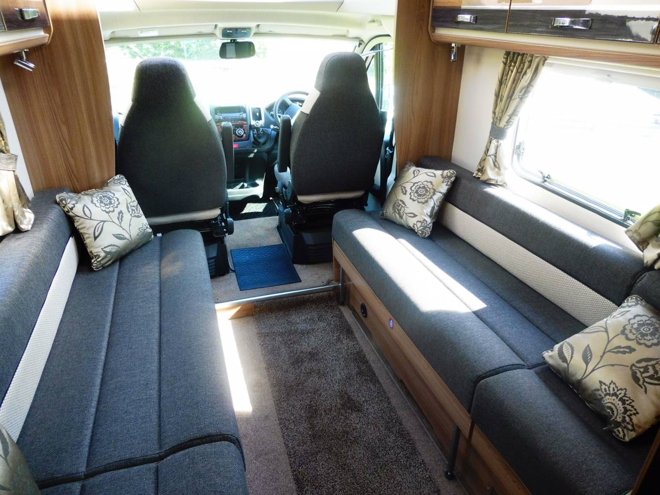 This EXTREMELY LOW MILEAGE Bessacarr E442 is in fabulous condition, even the tyres look unused. Getting to your destination is a pleasure aboard the 2.3L Fiat Ducato with air-con, cruise control, twin reversing camera, FM radio and phone preparation. When you arrive simply swivel your Captain style chairs into the spacious lounge area with plenty of space to entertain up to 8 people. High-gloss lockers and large skylights help make this a bright and airy space. The side sofas convert quickly into a huge double bed or can be used as singles if desired. The feeling of space continues rearwards with a large kitchen area containing everything you might need, in a dual-fuel hob, oven, grill, microwave, 3-way fridge and sink. At the rear of the motorhome is a large, full-width washroom, comprising vanity sink, separate shower cubicle, Thetford toilet and a large wardrobe. The outside space is enhanced with a large wind-out awning. Central locking and a Sigma alarm complete the package. A handsome vehicle on the road with distinctive furnishings, this will be a hit with your fellow campers . Please contact me for further details and more pictures. This vehicle is based in Worcester.