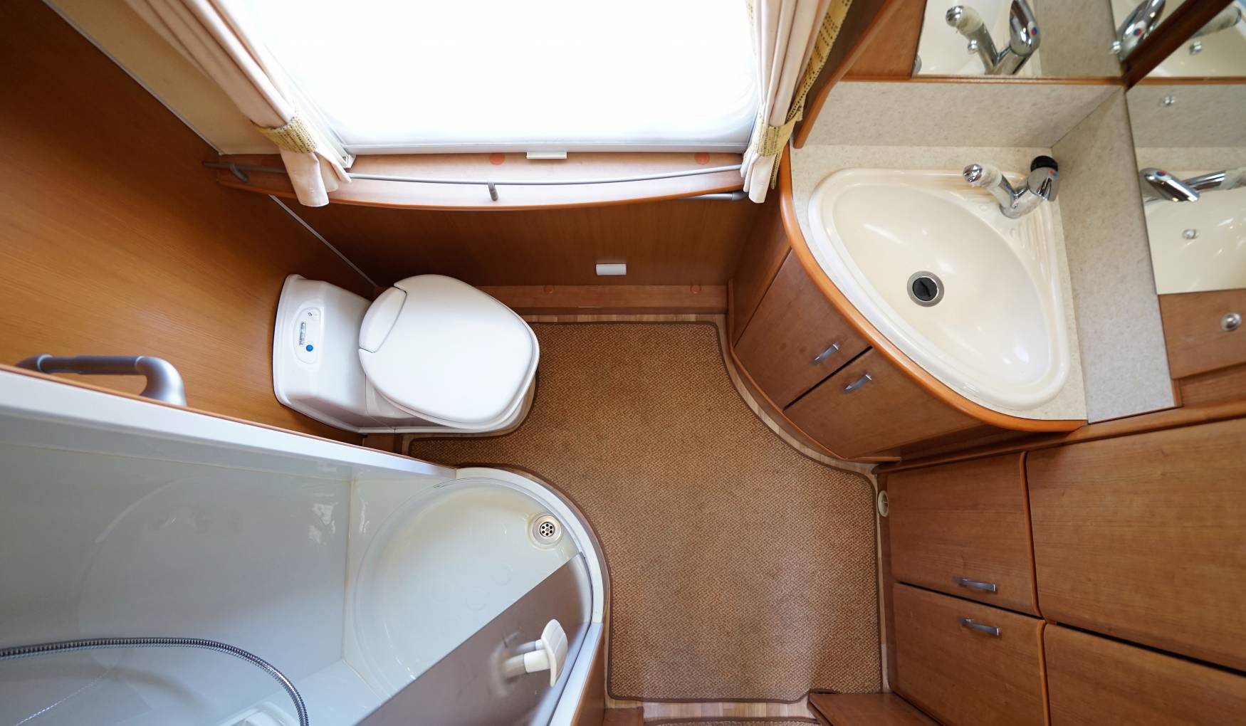 bathroom with separate corner shower, Cassette toilet and wash basin. Plenty of