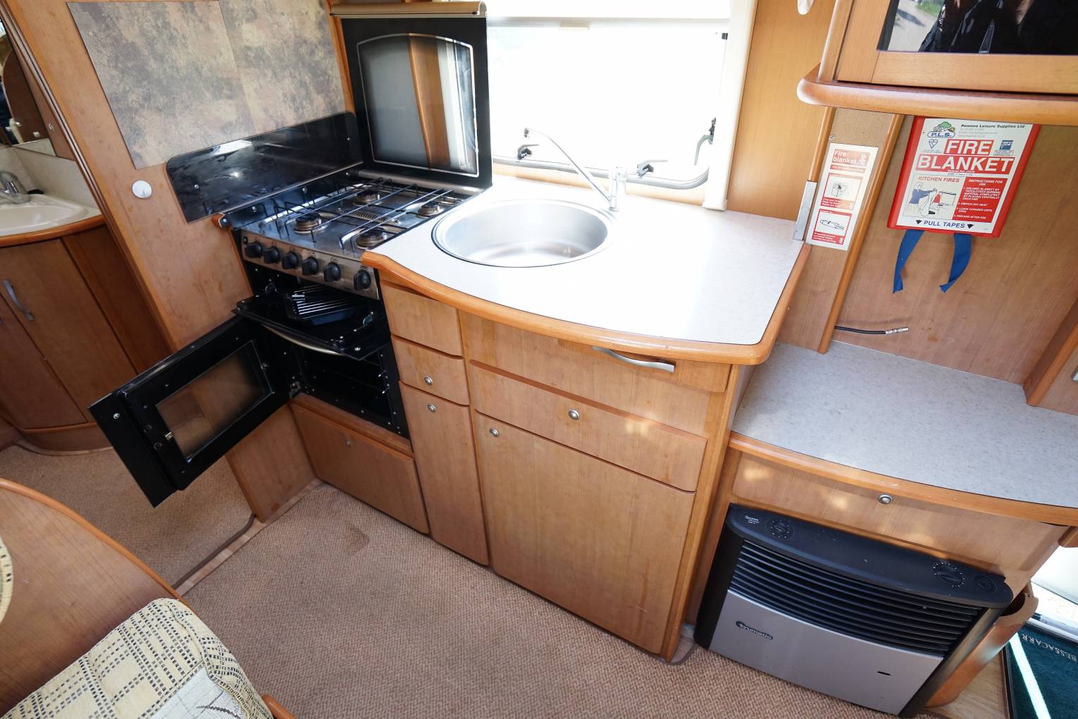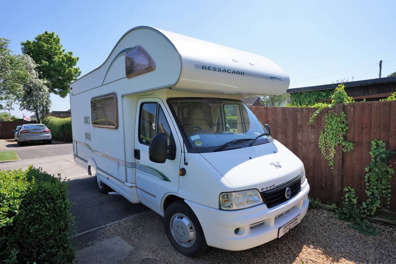 Bessacarr E445 4 berth with 4 travelling seats with belts, large over cab bed, middle dining area that converts to large double bed, Spacious end bathroom with separate corner shower Wardrobe and draws, Large external storage locker of storage space, Electric Step and awning. Comes with lots of extras including Bike Rack, Satellite dish & receiver, Hook up cable, Levellers, Mattress topper, Portable washing machine and clothes drying rack.