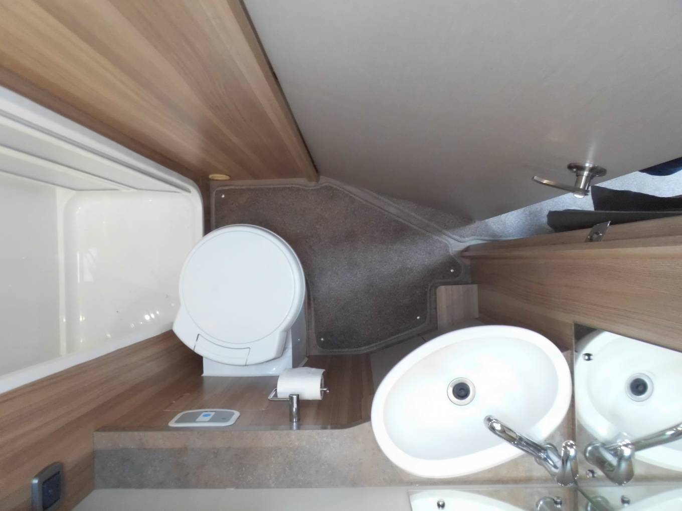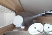 As you enter the motorhome the bedroom is on your right and features a fixed French bed which has power struts giving you access to a large storage area underneath. The bed measures 6'3" x 4'4" so will sleep most adults in comfort. You have a TV/DVD player in the bedroom, plenty of locker space and a skylight to throw in lots of natural light. There is also strip and LED spot lighting so at night time the bedroom looks pretty spectacular.
