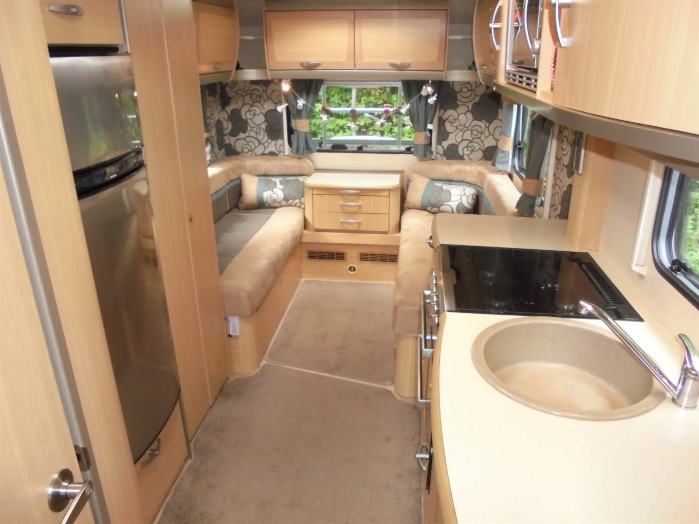 Layout is front washroom, central kitchen and rear lounge which converts to a double bed.