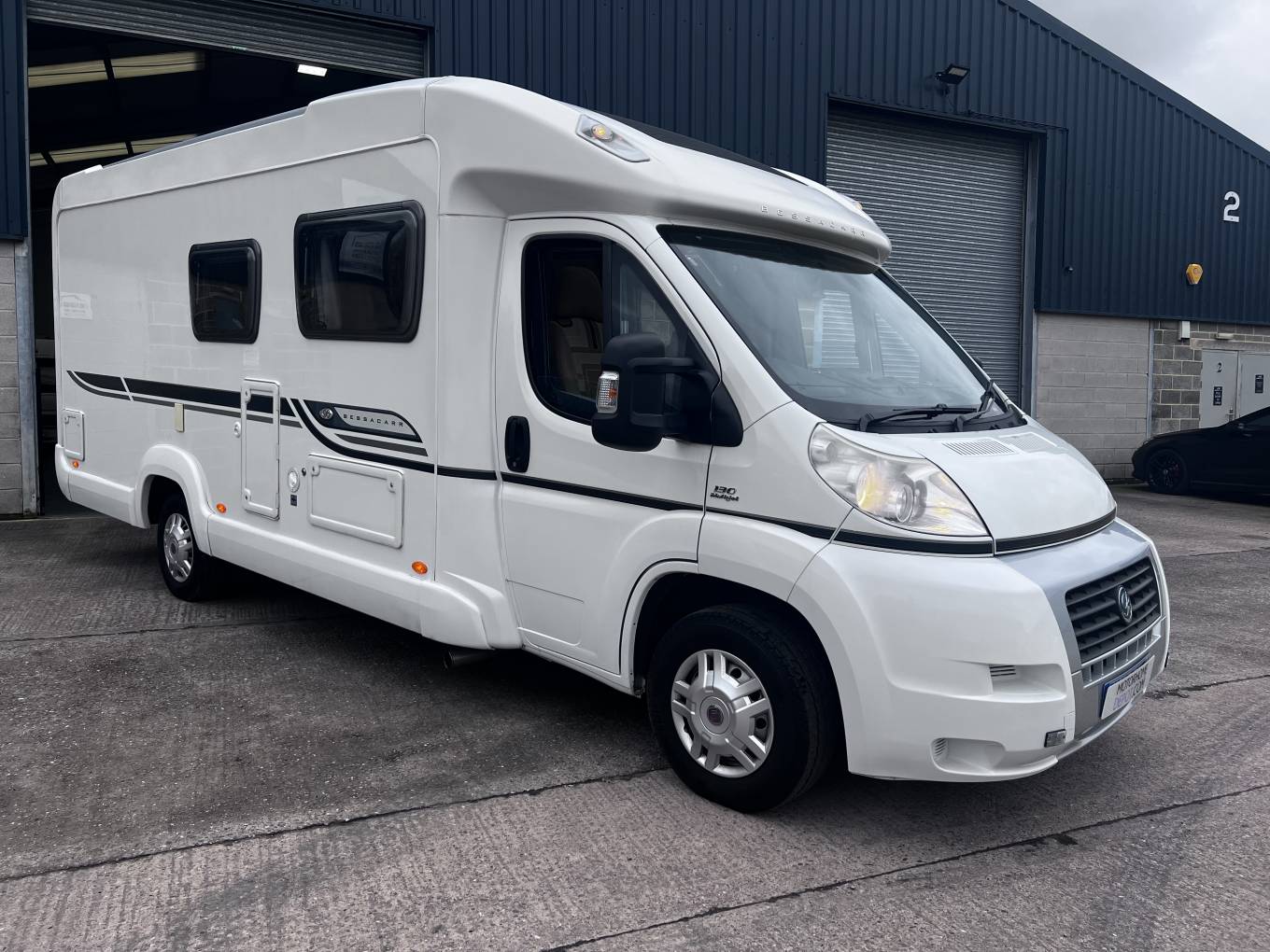 Motorhome Depot and pleased to present this 4 berth - 4 seat belt - rear fixed bed motorhome. Based on the 2.3 Fiat Ducato with a manual gearbox we have this beautiful example of the sought after Bessacarr E560. With a spacious front lounging area, well equipped kitchen with Microwave, sink, large fridge and full cooker this motorhome is perfect for the family looking to spend more time away without giving up the comforts of home. The rear washroom is well proportioned and features a cassette toilet, shower and hand wash basin, beside the rear washroom is a generous french bed that means you can retire at the end of the evening without having to make up a bed. This particular vehicle also benefits from Gaslow refillable gas bottles, 2 x TV's, cab air conditioning, cruise control, reverse camera, tow-bar along with professional conversion to carry 4 people with traveling seat belts +++