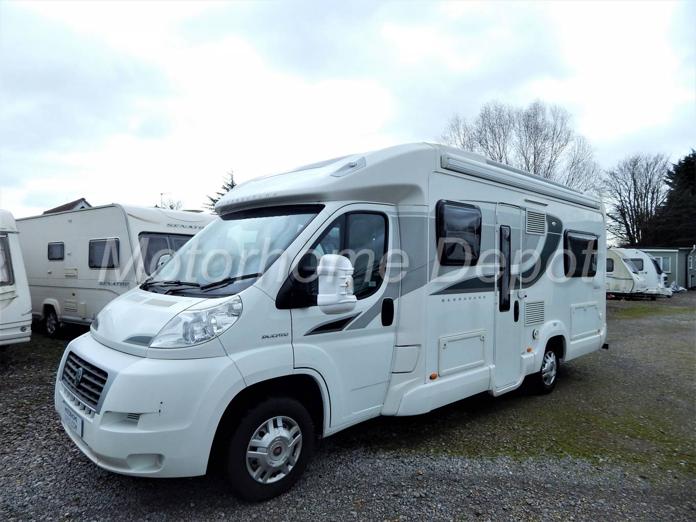 A lovely example of this lightweight low profile Bessacarr E564. Based on a Fiat Ducato chassis it is powered by a 130 BHP 2.3 Turbo Diesel engine with a manual 6 speed gearbox. With only 2 Owners from new it has a comprehensive service history including 5 service stamps in the book. The cab benefits from: Cruise Control, electric windows & mirrors; central locking, factory fitted cd head unit; Stereo controls on the steering wheel; Rear View Mirror reversing camera screen; remis blinds to windscreen and side windows.