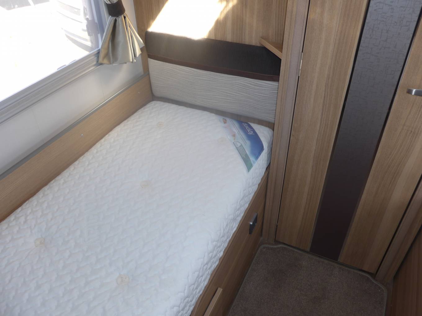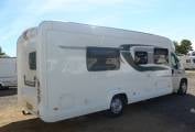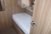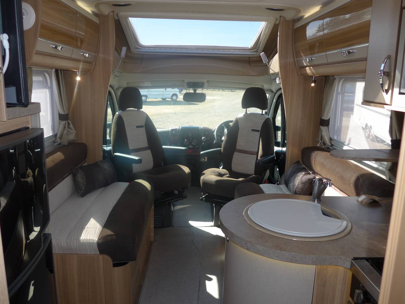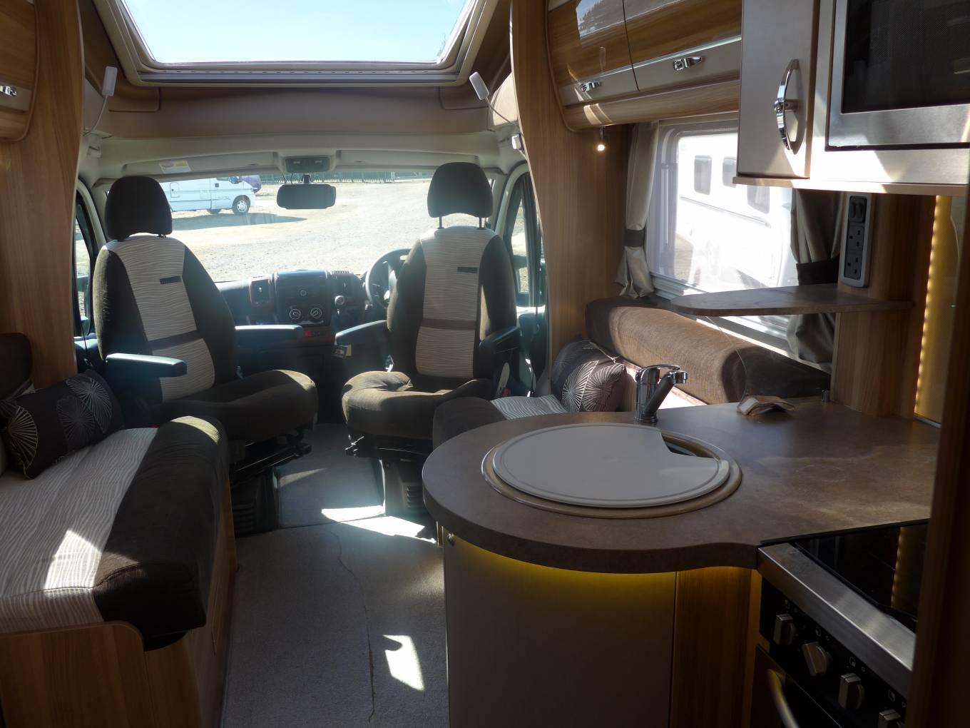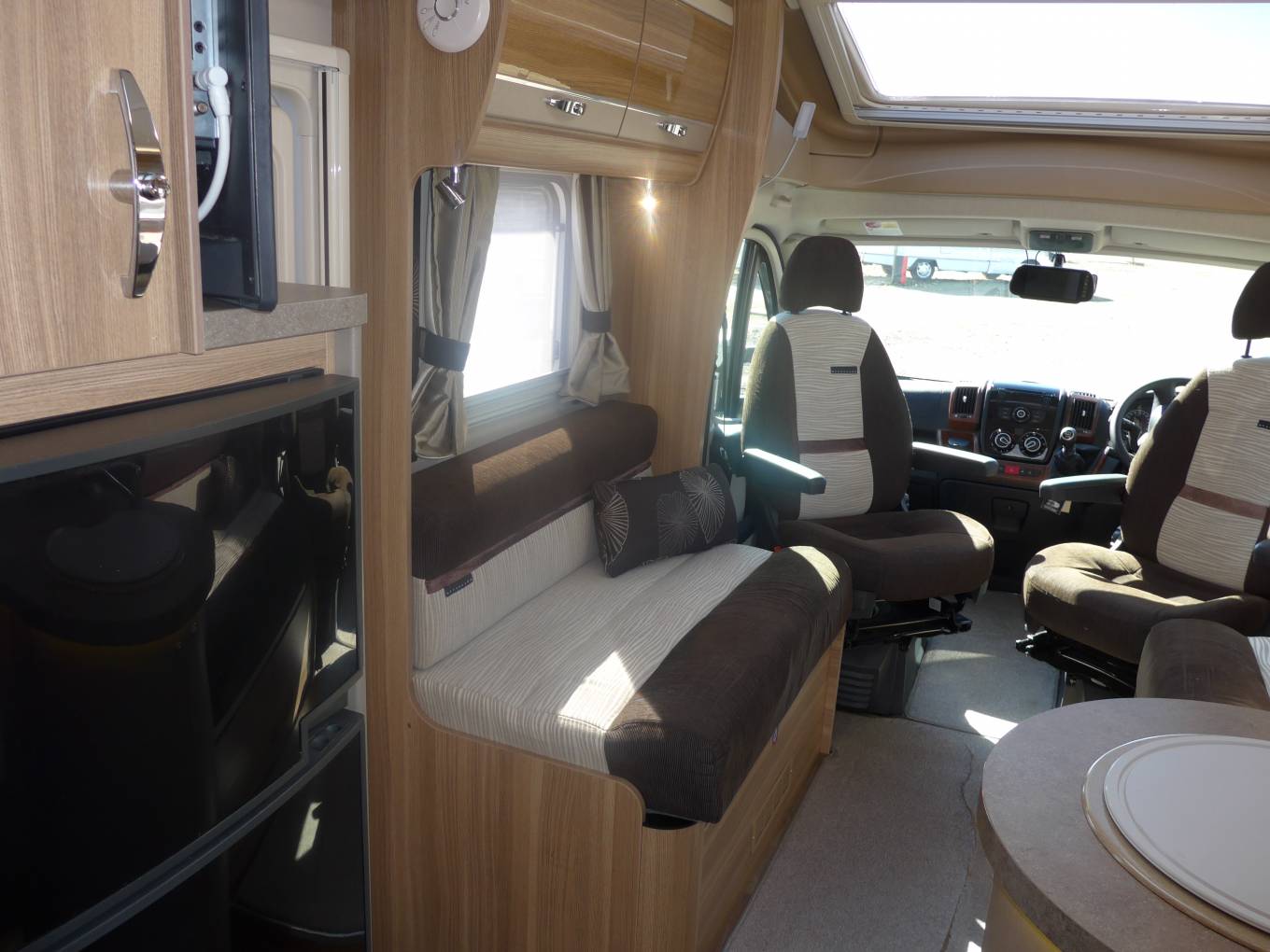 2 Swivel captains seats, Cabin air-con, Cruise Control, Blue and Me, Radio CD player, reversing camera, Two comfortable side facing sofas, galley kitchen with dual fuel hob, grill oven, microwave oven and a large Automatic 3 way fridge with separate freezer compartment. Door leading to separate bedroom which has two single beds and two floating wardrobes. Further door to large end washroom with cassette toilet, hand basin, separate shower cubical and storage. Heating and hot water is provided by ALDE central heating. Integrated awning, reversing camera.