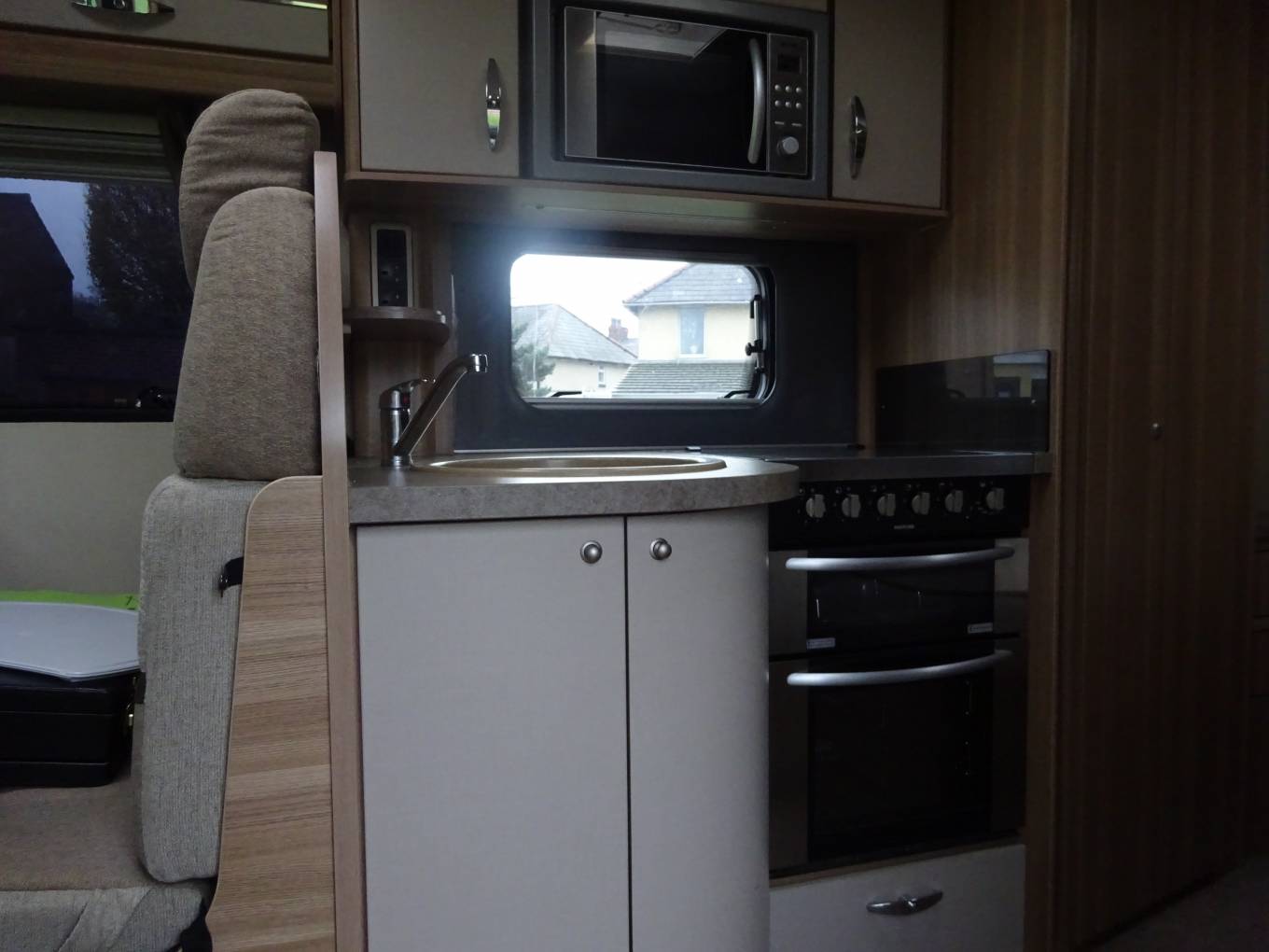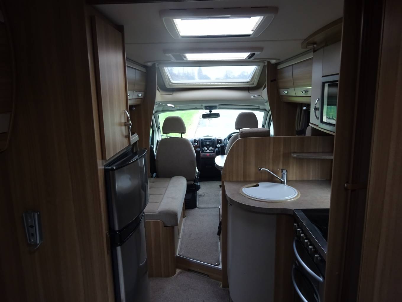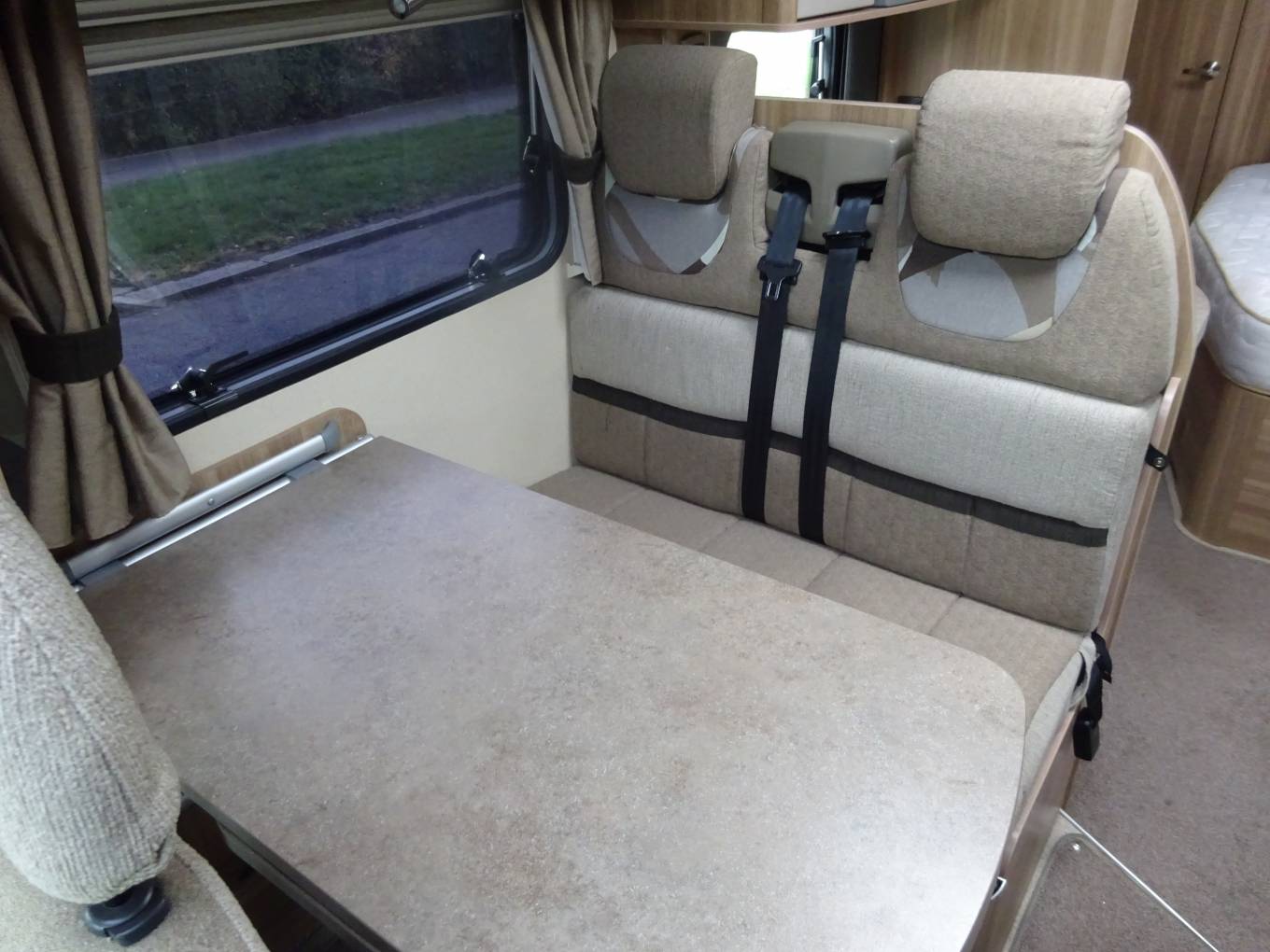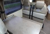 The lounge area is really bright and spacious and will comfortably seat 6 adults utilising the swivelling captains seat and the extendable table. The seating in the lounge area also converts quickly and easily into a very comfortable double bed if required.