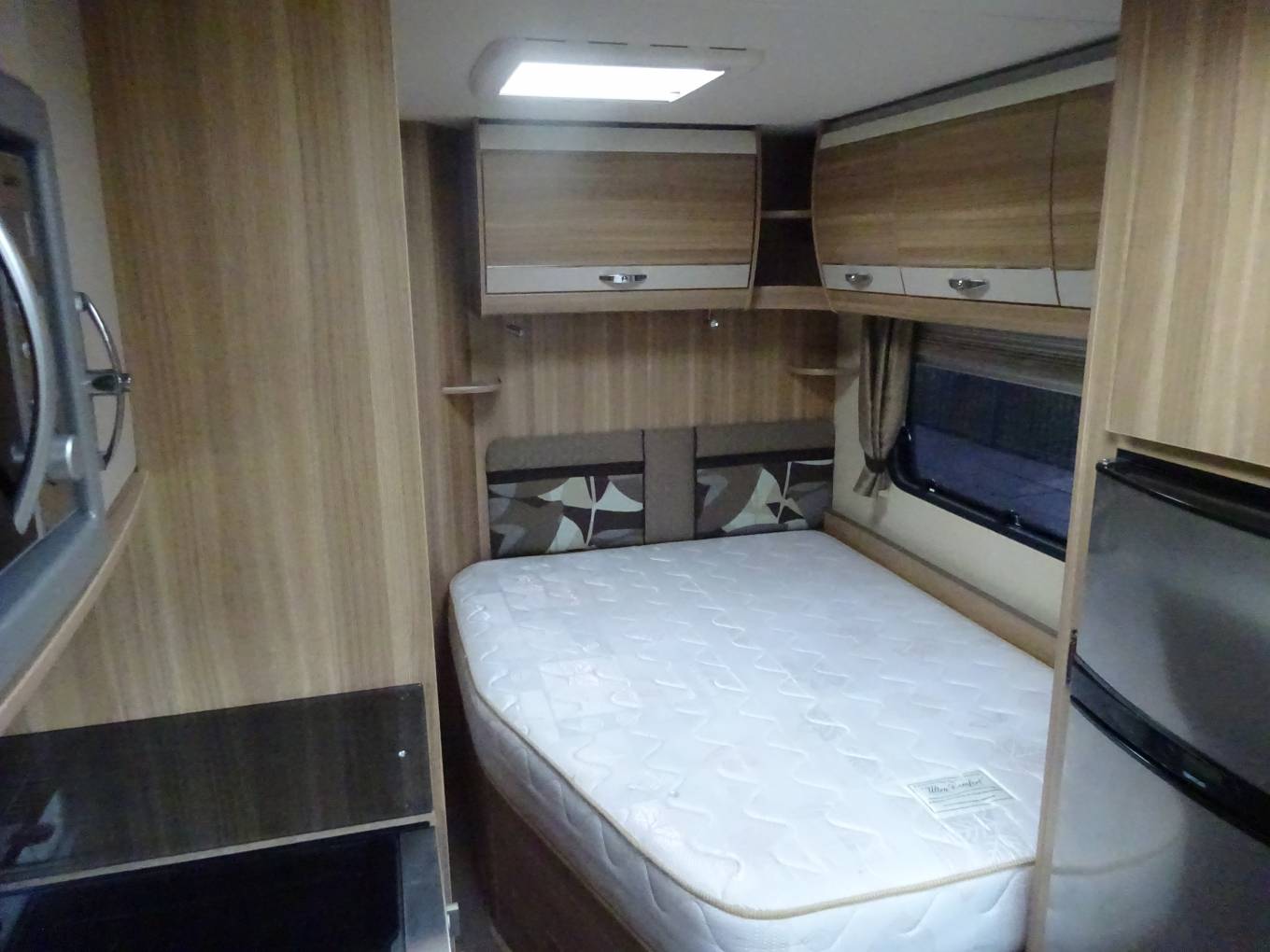 The fixed double bed is really comfortable with lots of storage underneath and for privacy, the bedroom can be separated from the living area by means of a sliding blind.