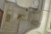 wash basin and shower. The shower tray has be recently repaired with fibre