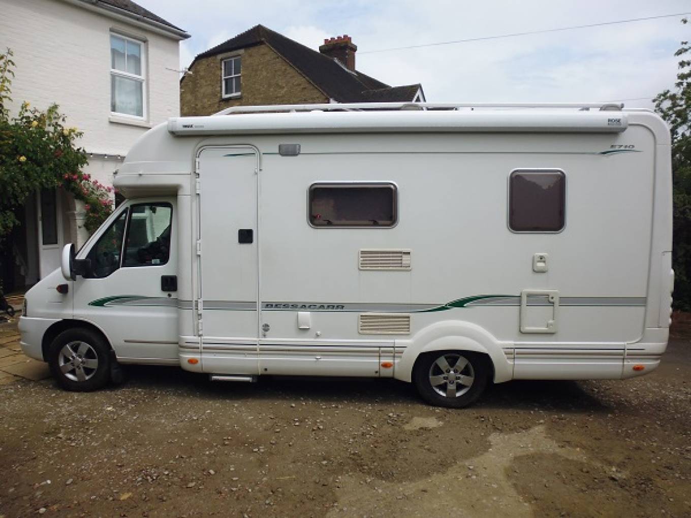 Great example of Bessacarrs best selling E710 model. This fixed bed motorhome is spacious yet is only 21ft long with a maximum of 3400kgs so can be driven on any licence. This 2006 model has covered 28k miles from new and has had a recent habitation check. This motorhome includes standard Bessacarr specification plus 2x solar panels, satellite dish, cycle rack, 2x tv, reverse camera, alloys, awning and enclosure, towbar and winter cover. Based on the excellent Fiat cab with Alko chassis, this variant has the 2.8jtd engine with 130bhp. MOT until july 2020 and available to view in kent.