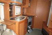 The kitchen is located to the centre of the motorhome and is extremely functional and practical with 4 ring gas burner hob, extractor fan, separate grill and oven, sink with drainer microwave and copious amounts of well thought out storage. There is also a 150 ltr fridge with separate freezer allowing you to plan for those longer journeys.