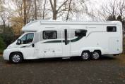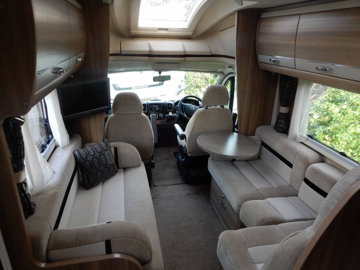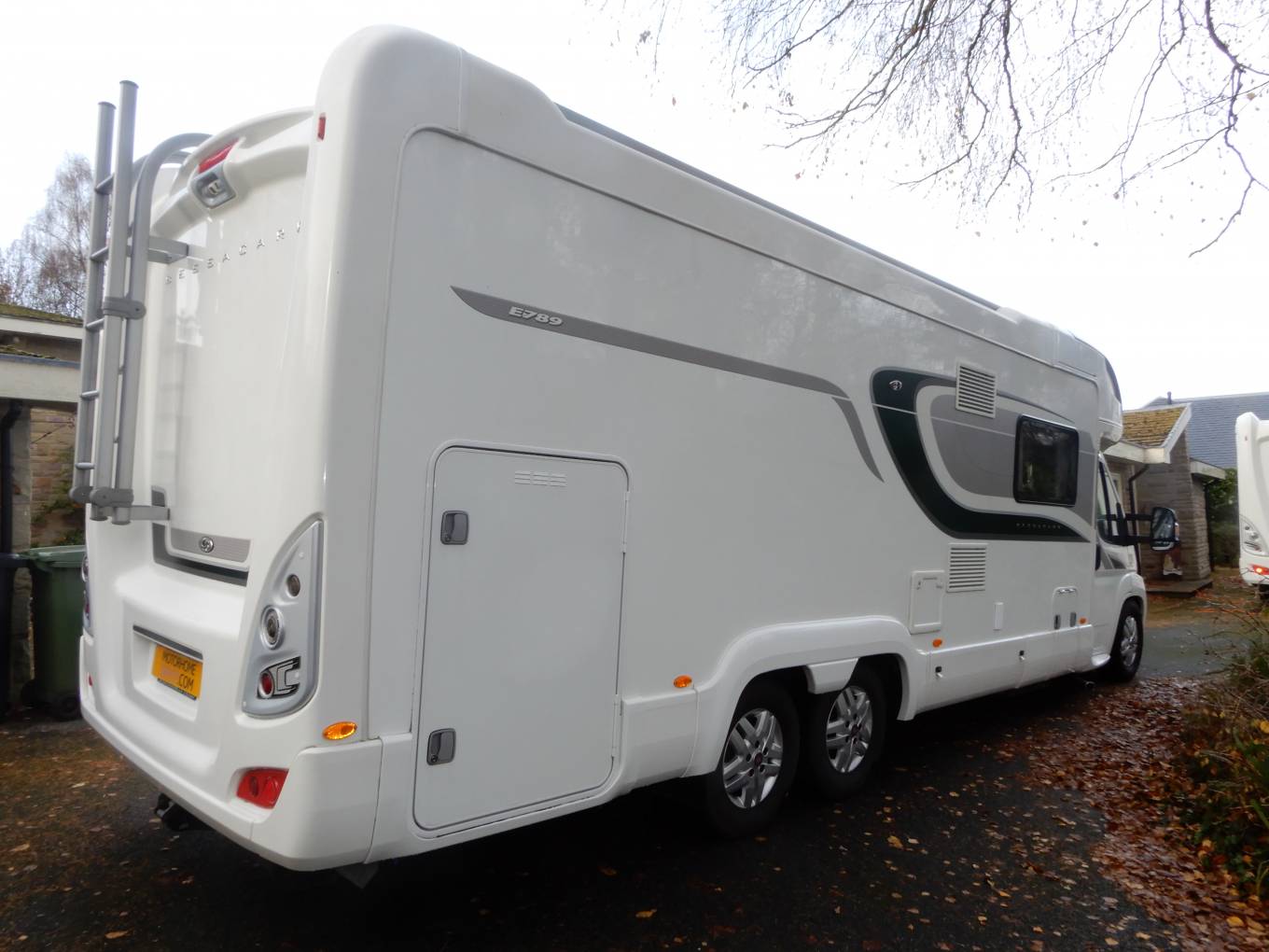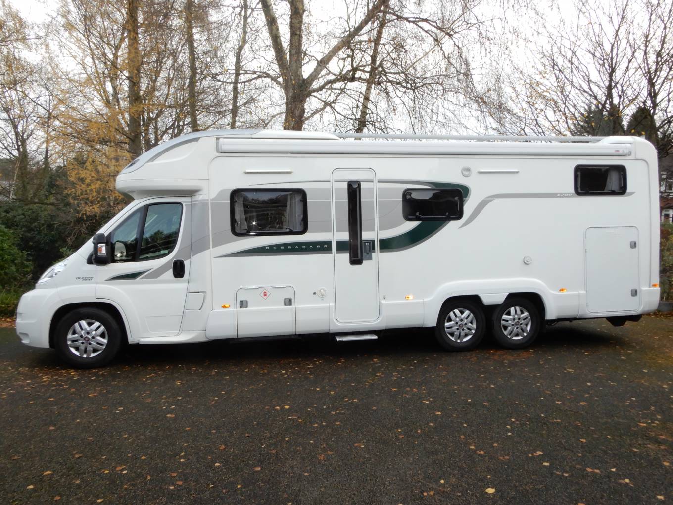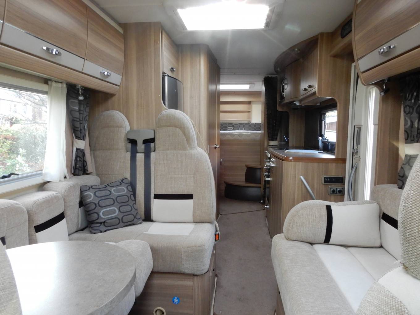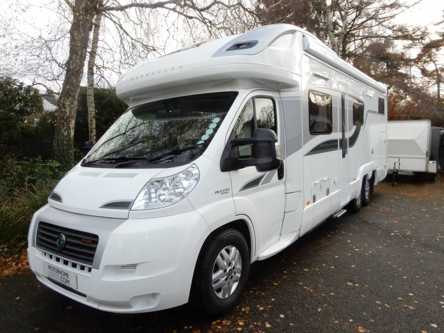 This is a fantastic example of a Bessacarr E789 with twin axle 3ltre engine, 2012, Automatic, Diesel with Fiat based Ducato Al-KO Chassis limiting any body roll on the roads. It comes with Cab-air-con, Auto cruise, Bluetooth and duo Reversing Camera. The two front seats swivel to make a great family dining area, the cream interior really gives this motorhome a comfortable and modern look. Two extra seat belts helps make this a great family Motorhome with all the luxury you would ever need. The dining area can be made into an extremely large double bed or a small double and single. Working our way to the rear we come to the kitchen area were you have a oven, grill, 3 gas burner and electric hob, sink tap and plenty of work space. Above you have a microwave and plenty of storage. Across from here you have a fridge freezer. The wash room has a separate shower, toilet, sink and tap. The bedroom has two wardrobes and a fixed rear bed. Two TV's are included. Externally there is a Awning, the garage at the rear has access from both side's with an aluminium flooring to protect the base and also has a Tow bar and a Ladder and comes with one Gas bottle.