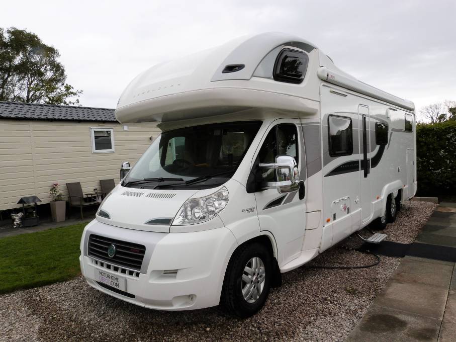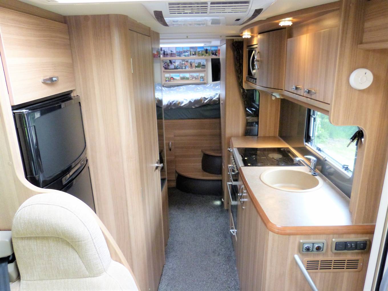 Call with any questions on 01423 609985. This 6 berth, coachbuilt Bessacarr E789, is the ideal large motorhome for touring over an extended period. It was first registered in March 2013, has the powerful 2999cc, 180bhp engine and 6 -speed manual gearbox. The standout feature is the large rear garage, with doors on both sides, which easily holds road bikes or mobility scooters, so freeing up storage space. There is a scooter rack on the rear, which will also hold electric bikes. Internally at the rear you will find a double rear fixed bed, with garage access underneath and plenty of storage cupboards above. This area benefits from a vanity mirror at the side and a skylight above which makes this end of the motorhome light and airy. By the bed you will find the washroom which contains a sink, toilet, and shower with full enclosure. The galley kitchen has a cooker with oven, grill, 3 gas burners plus electric hob and microwave above, plus sink and then on the offside a large fridge freezer and again plenty of storage space above and below the worktop. The dinette has an L shape sofa and then another sofa opposite. It will comfortably seat 6 people and includes 2 full forward-facing seatbelts, and another bed could be made up here. In the cab there is air conditioning, rear view and forward-facing camera, radio/CD player, cruise control and 2 swivel seats. The overcab bed lifts to create extra headroom if needed. It also has a solar panel, full length canopy, towbar, external 240V socket, 2 televisions and Oyster satellite system. The GVW is 5000kg, so C1 licence is needed. There are plenty of windows throughout which makes this motorhome light and airy, and the upholstery is in particularly good condition. The mileage is 29,325 miles with MOT to March 2023, with no advisories. This motorhome should be seen at the earliest opportunity and additional photos are available on request. It is situated near Preston. Part-Exchanges are welcomed on this vehicle, for further information and photos please call us on 01423 609985 quoting Reference 185938